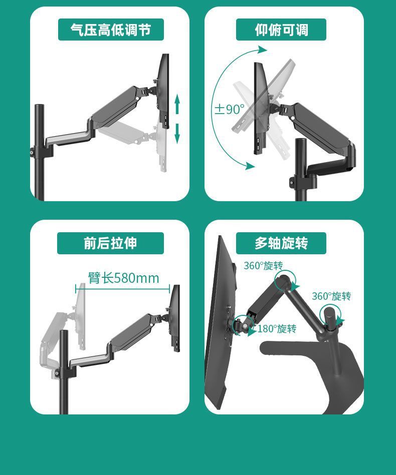 유니버설 펀치 프리 디스플레이 바닥 스탠드 전자 경쟁 창고 컴퓨터 서스펜션 벽걸이 공압 브래킷 팔 모바일 카트