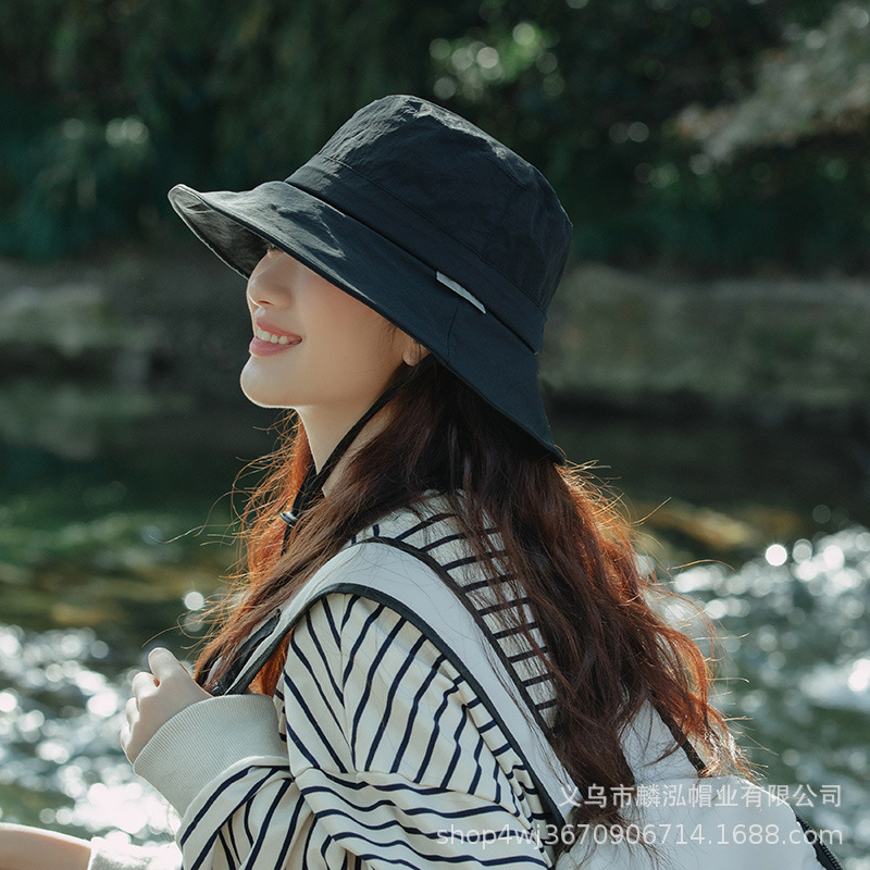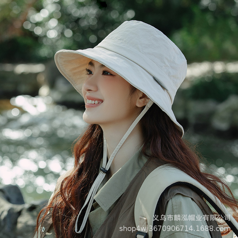 빠른 건조 Drawstring Fisherman Hat 여성의 여름 안티 자외선 차양 모자 접이식 선 스크린 모자 남성용 야외 등산 모자스토어 가기