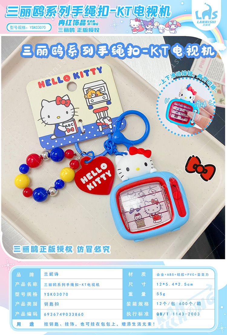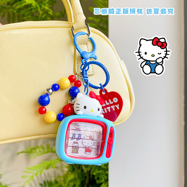 정품 헬로키티 키 체인 미니 TV 작은 장난감 헬로 키티 학교 가방 펜던트 소녀 하트 펜던트스토어 가기