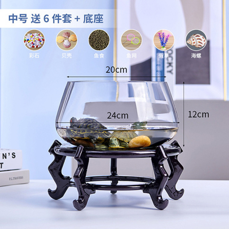 새로운 물고기 탱크 유리 라운드 책상 pothos 수경 가정용 작은 물고기 크리 에이 티브 투명 작은 미니 테이블 Yiling