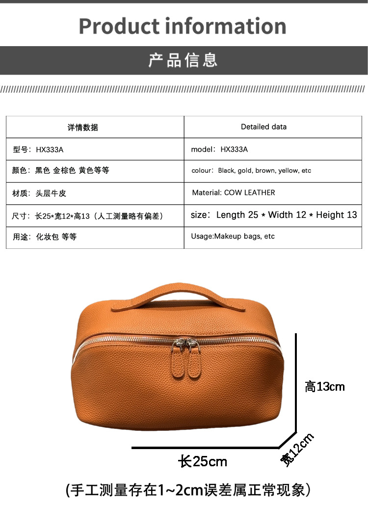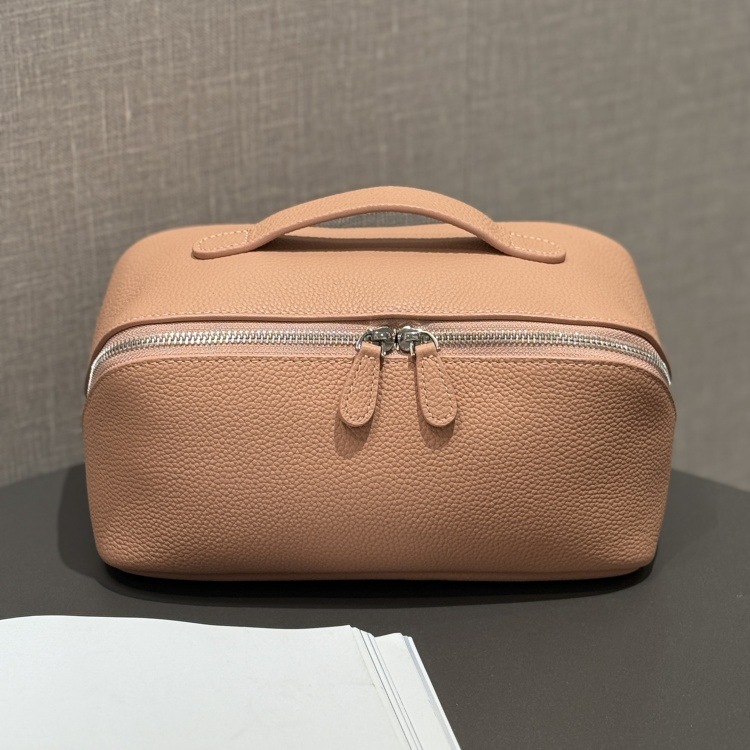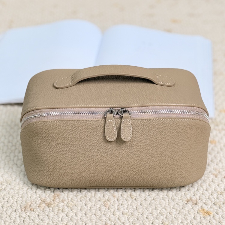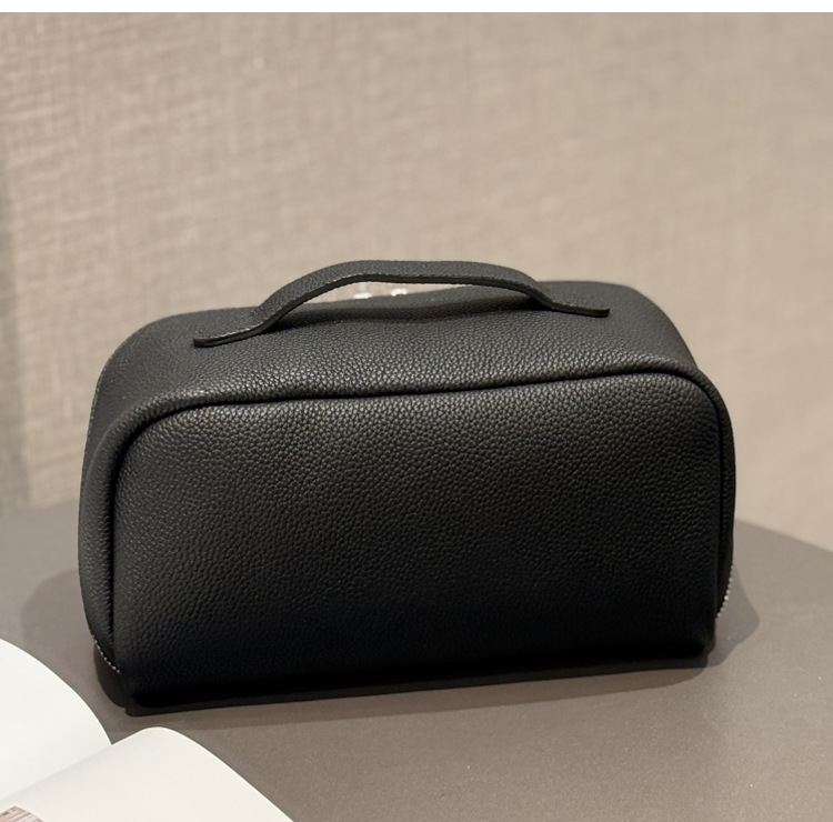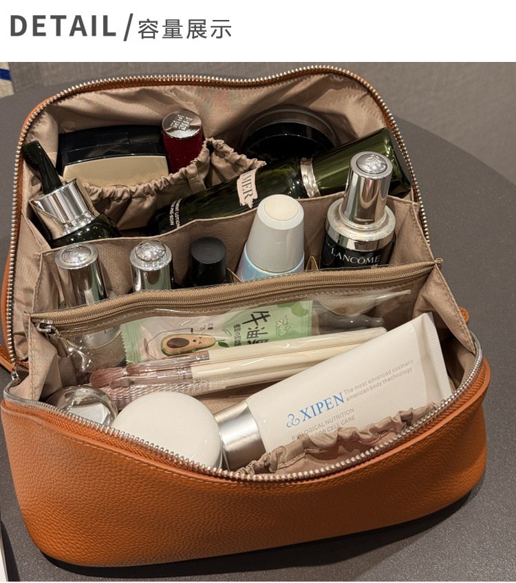 심플하고 고급스러운 1층 소가죽 질감의 화장품 가방, 천연가죽 여행용 휴대용 세면도구 가방, 대용량 수납가방스토어 가기