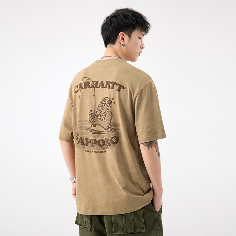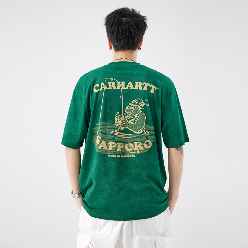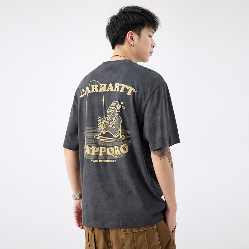 헤비 반팔 티셔츠 남성용 느슨한 플러스 사이즈 패션 브랜드 여름 2024 새 옷 남성용 코튼 남성용 티셔츠스토어 가기