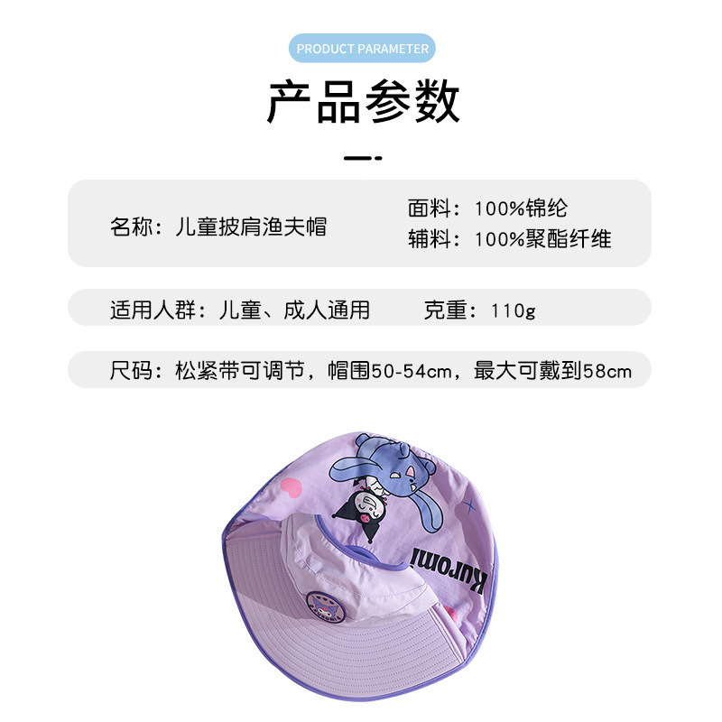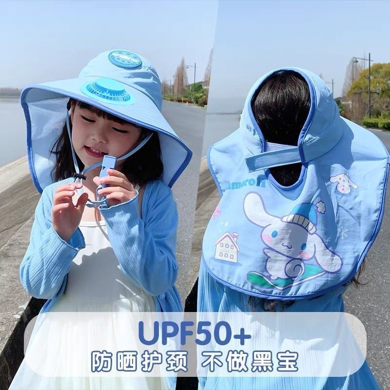 팬이있는 어린이 산리오 선 스크린 모자 여름 차양 목도리 모자 큰 챙이 남자와 여자의 태양 모자