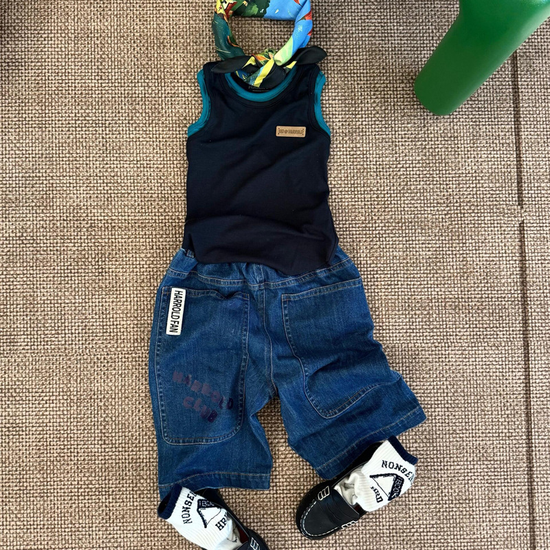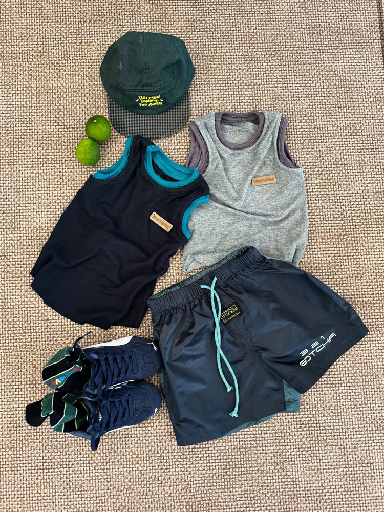 소년 여름 정장 2025 새로운 베이비 캐주얼 다목적 색상 일치 가짜 투피스 조끼 스포츠 야외 속건 반바지스토어 가기