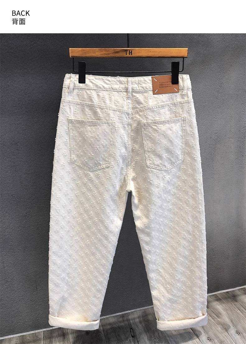 대외 무역 디자이너 고급 자카드 공예 트렌디 브랜드 헤비 청바지 남성 루즈 스트레이트 팬츠 아메리칸 하이 스트리트스토어 가기