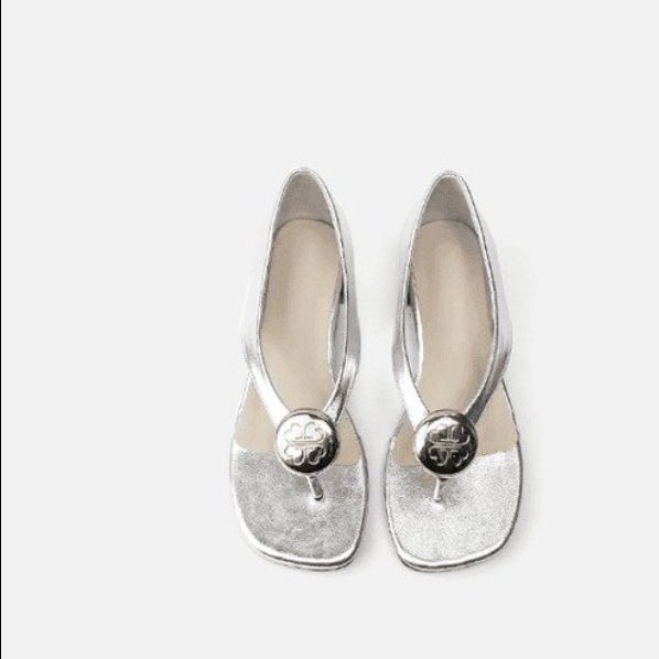 5cm 높이 증가 금속 원형 버클 플립 플롭 샌들 여성 2025 여름 새 스타일 샌들 간단하고 신선한스토어 가기