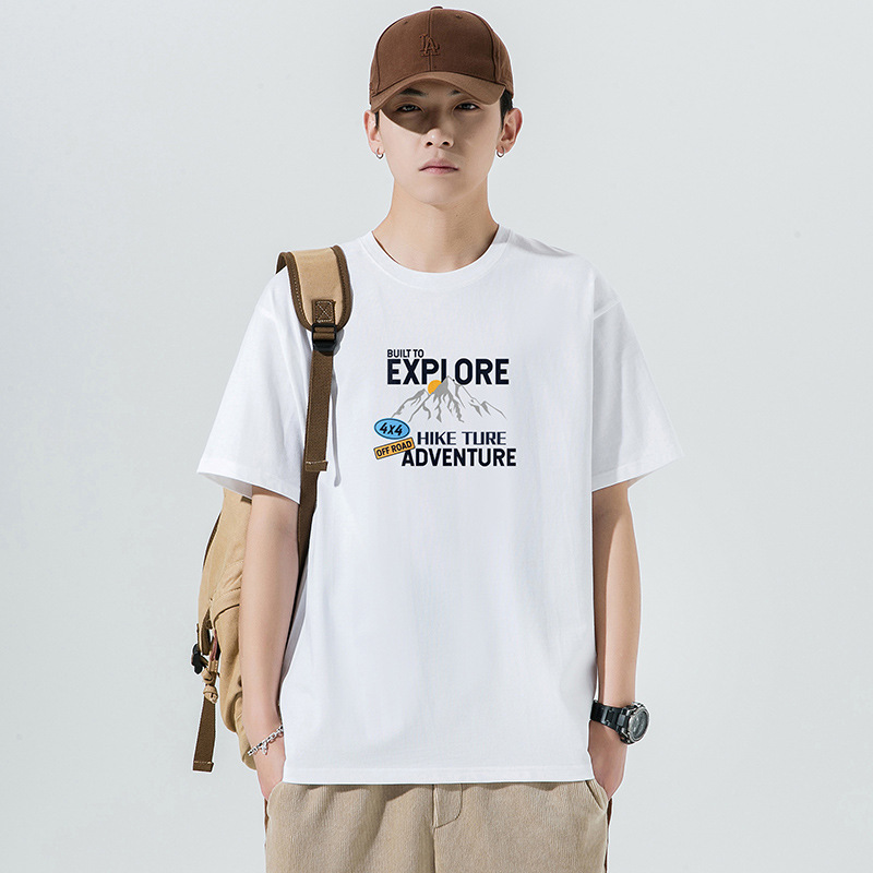 퓨어 코튼 티셔츠 남자 2025 년 여름 남성 의류 남성 패션 브랜드 캐주얼 반팔 티셔츠 남자 반팔 셔츠 올매치 탑스토어 가기