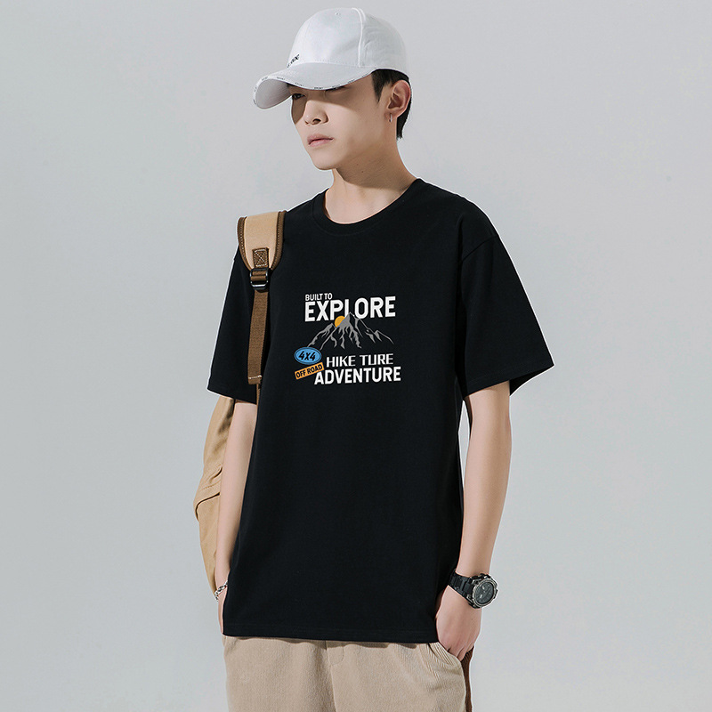 퓨어 코튼 티셔츠 남자 2025 년 여름 남성 의류 남성 패션 브랜드 캐주얼 반팔 티셔츠 남자 반팔 셔츠 올매치 탑