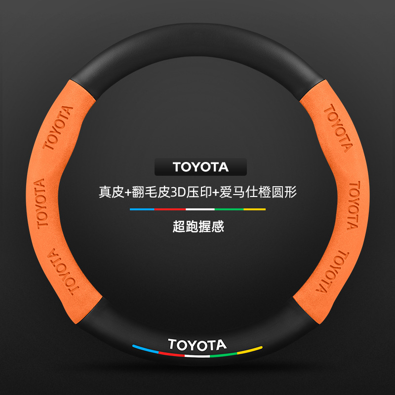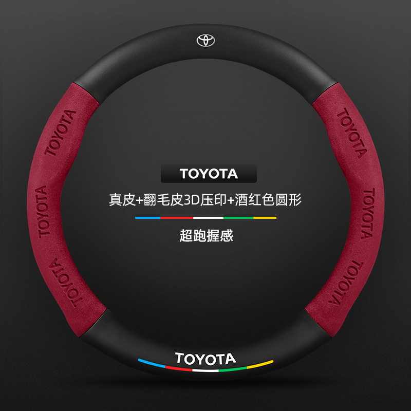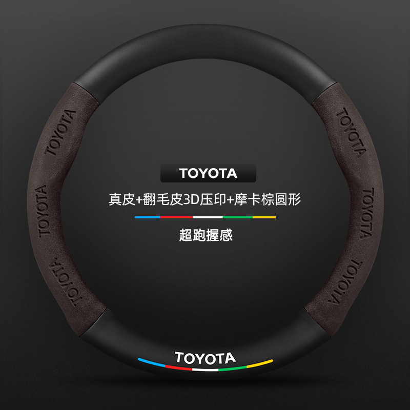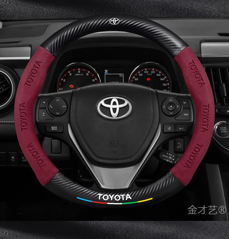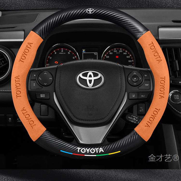 Toyota RAV4 Rongfang 스티어링 휠 커버에 적합 09-24 모델 정품 가죽 사계절 범용 탄소 섬유 스웨이드 커버