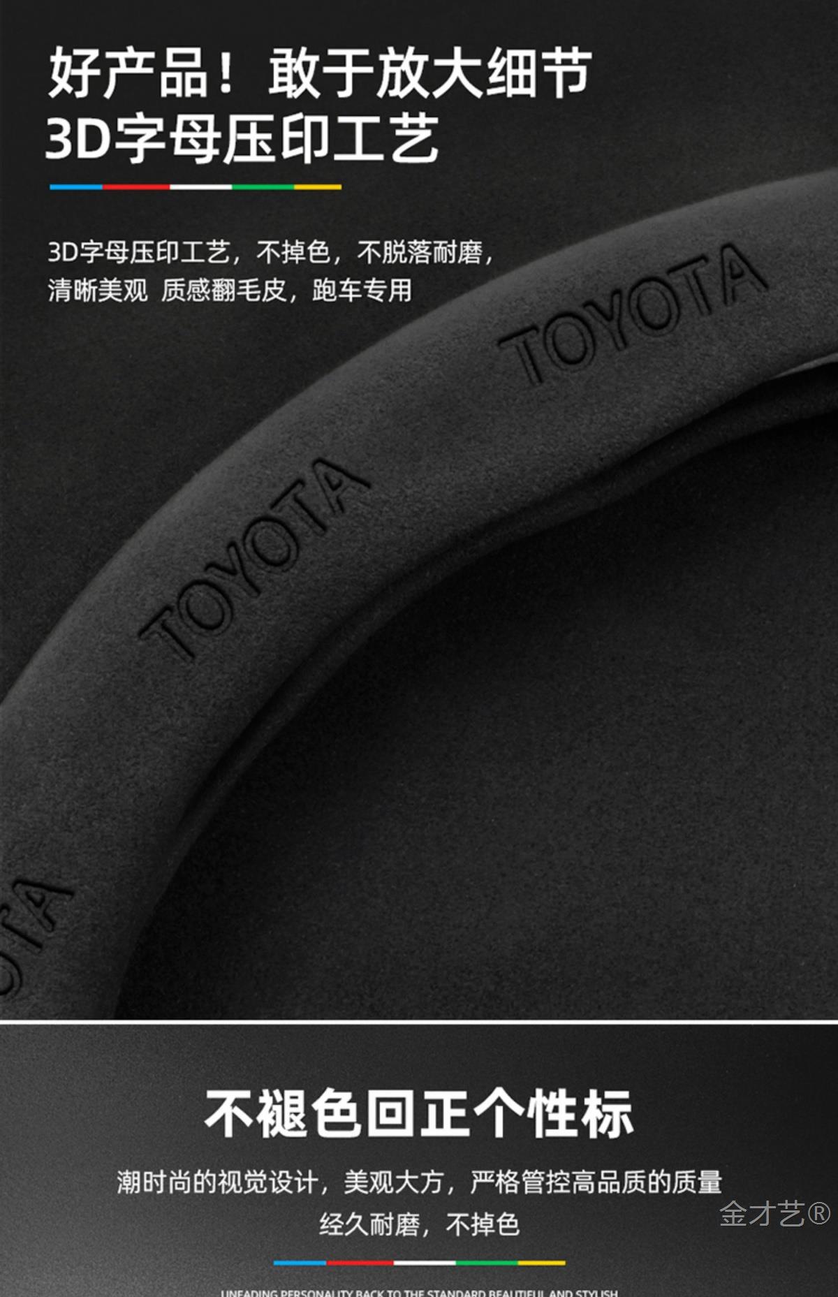 • 스웨이드 3D 양각 탄소 섬유 가죽 블랙 라운드 토요타 로고
