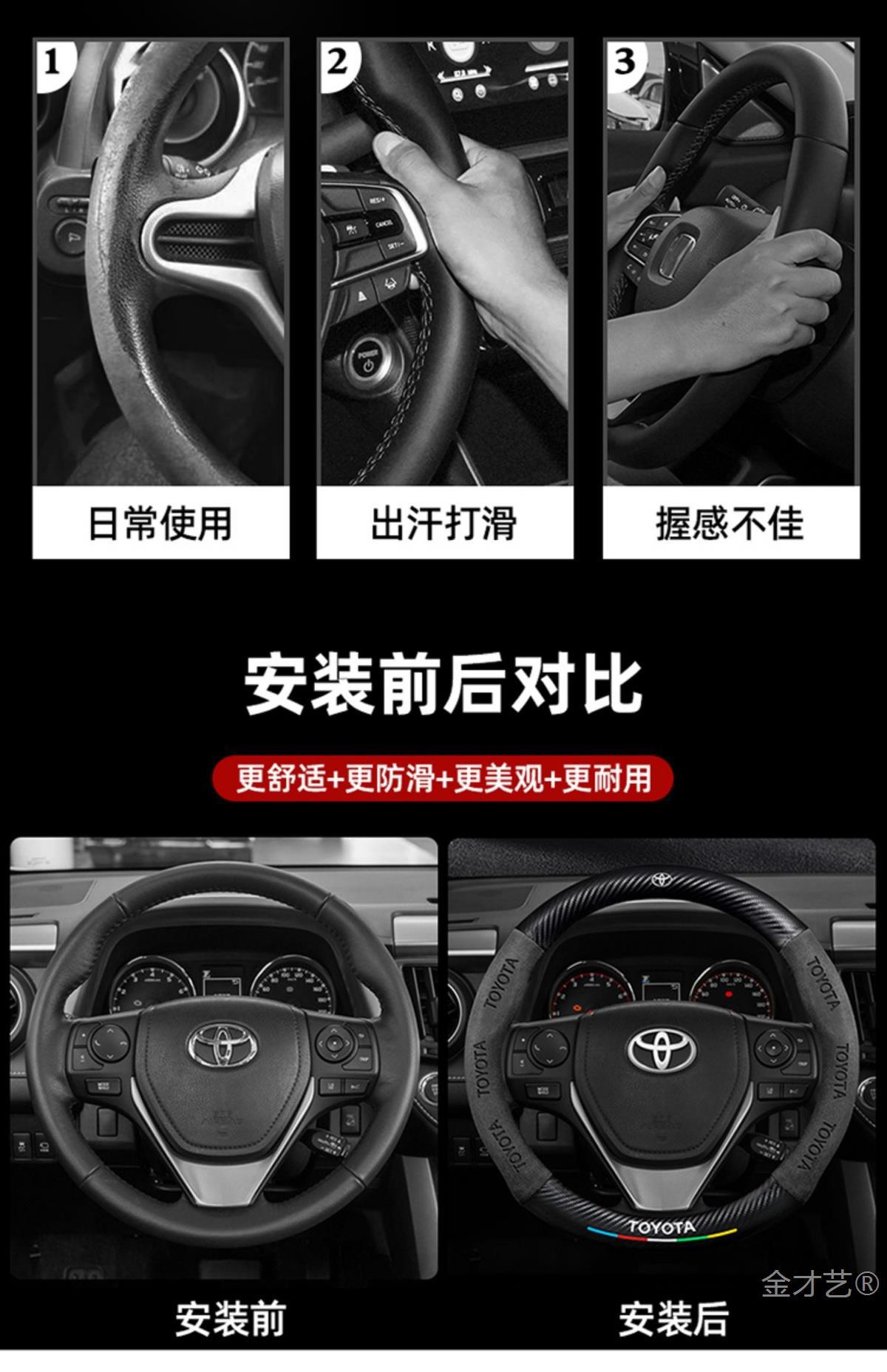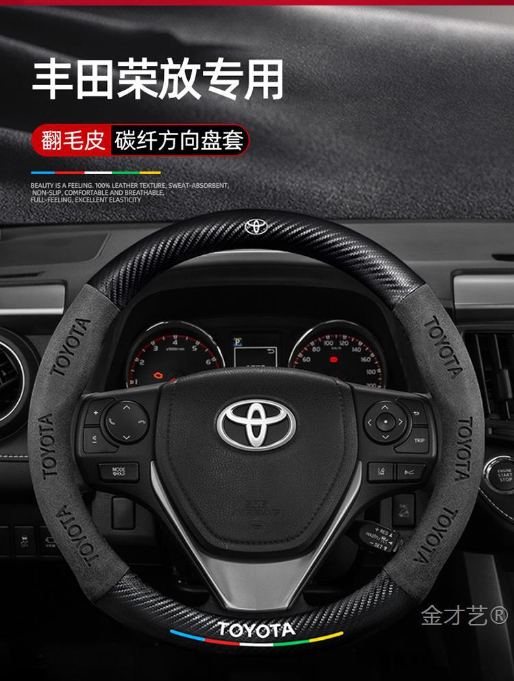 Toyota RAV4 Rongfang 스티어링 휠 커버에 적합 09-24 모델 정품 가죽 사계절 범용 탄소 섬유 스웨이드 커버스토어 가기