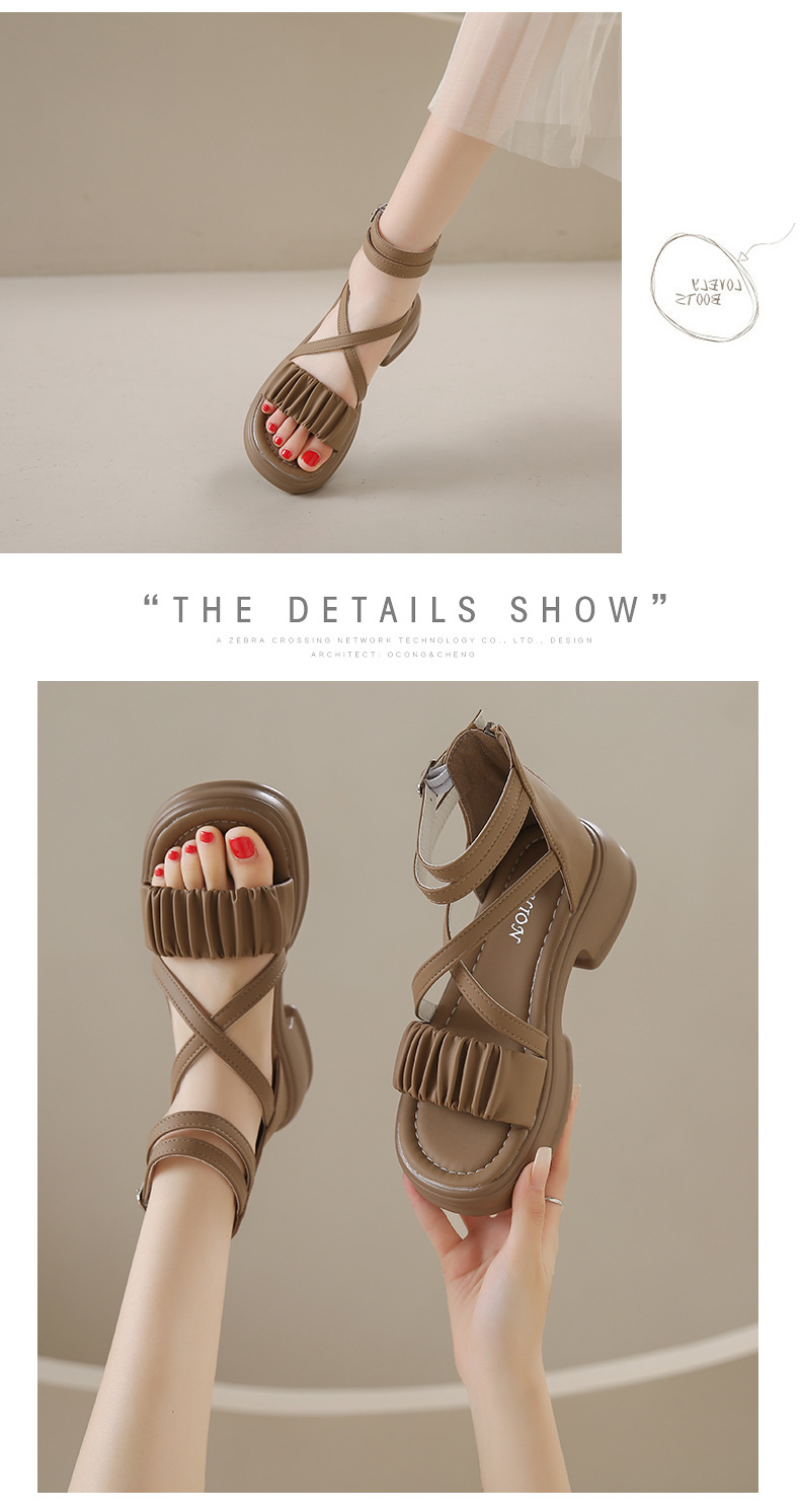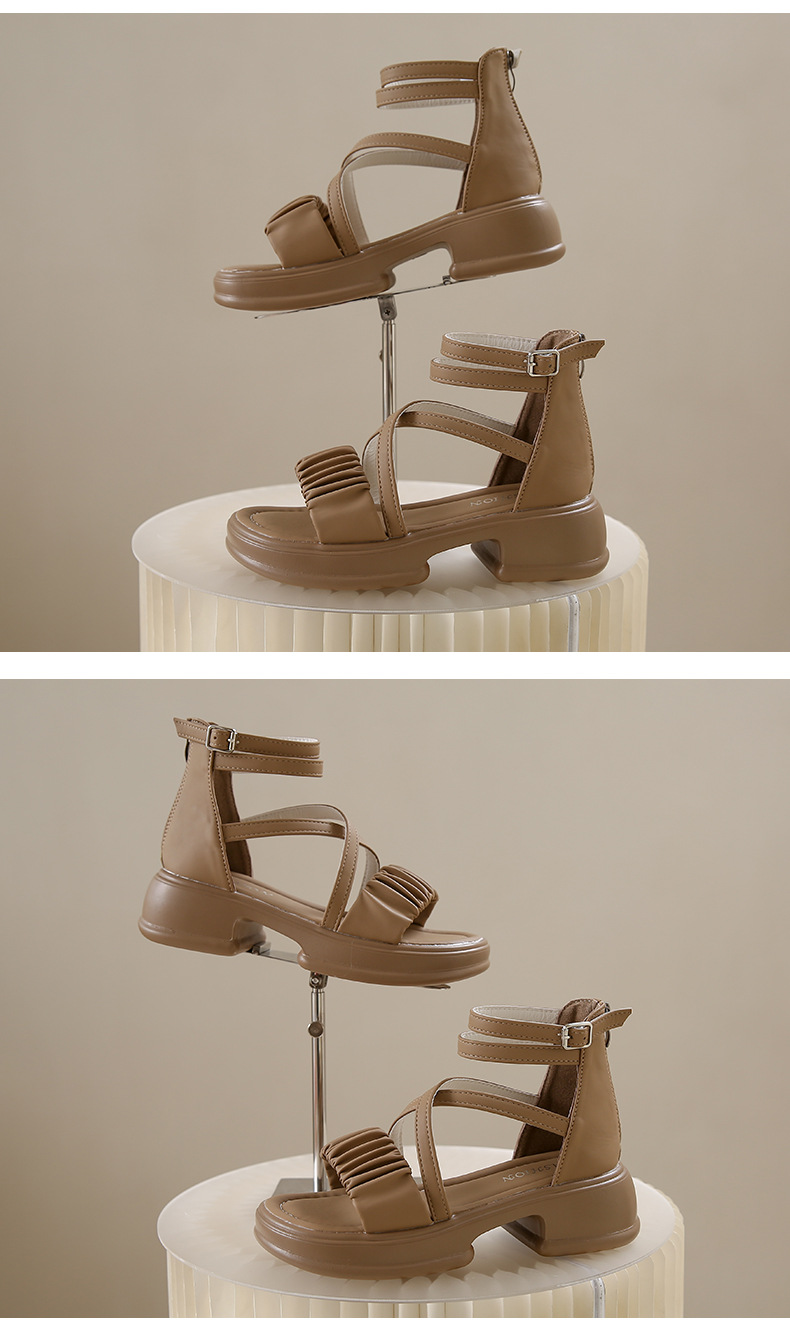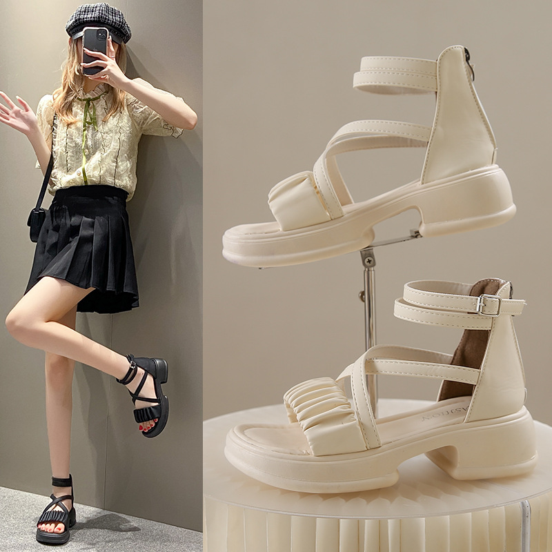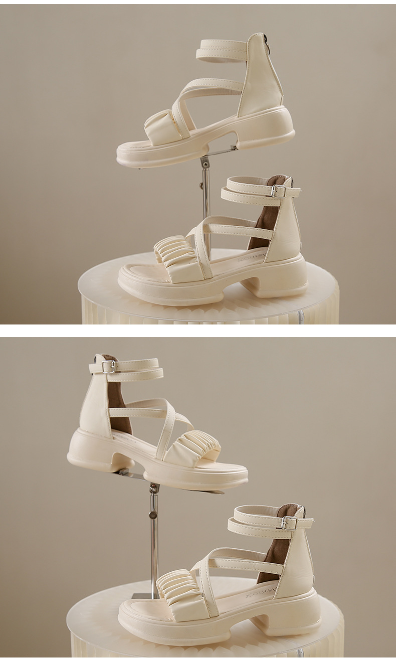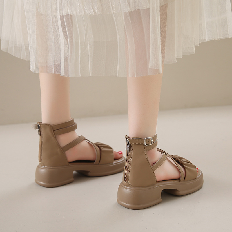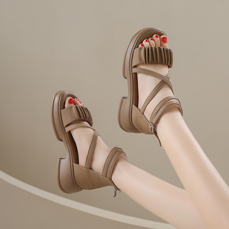 2025년 신상 여름 스타일 오픈토 미드힐 패셔너블 여성 샌들 원라인 버클 스트랩 플랫폼 밑창 지퍼 캐주얼 여성화스토어 가기