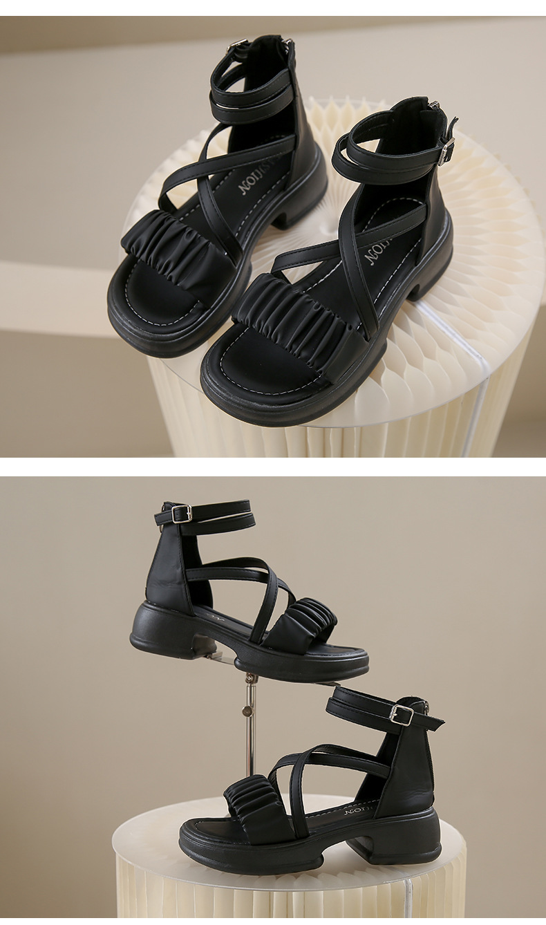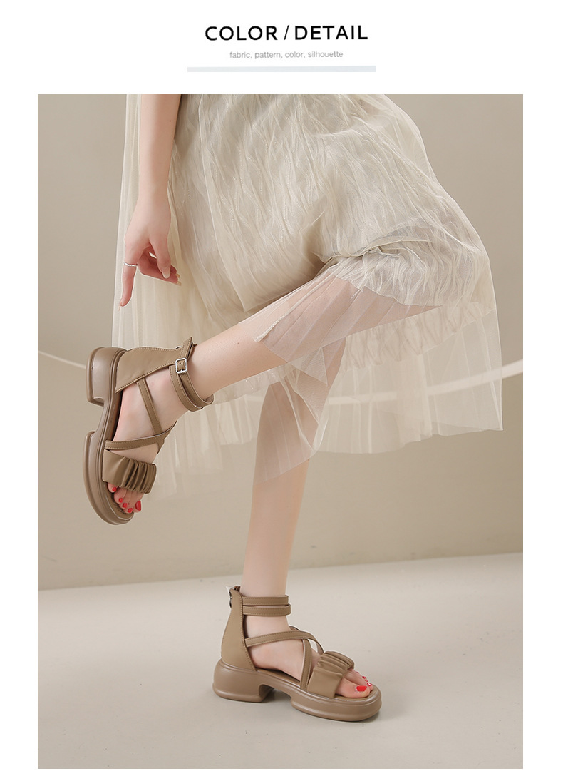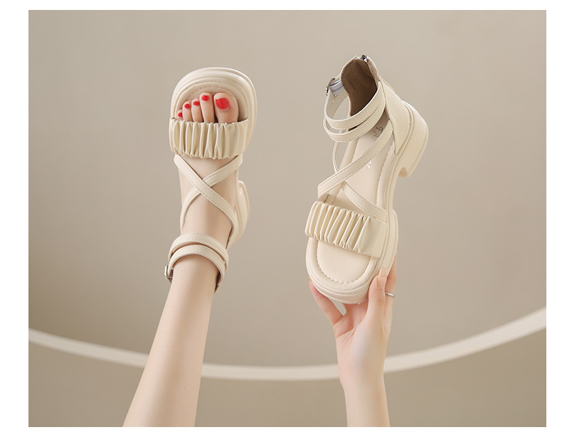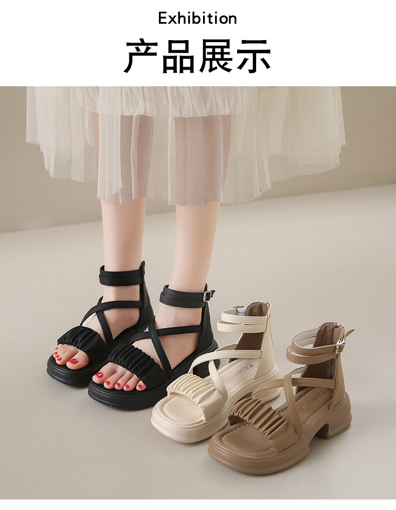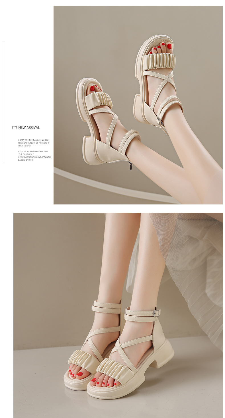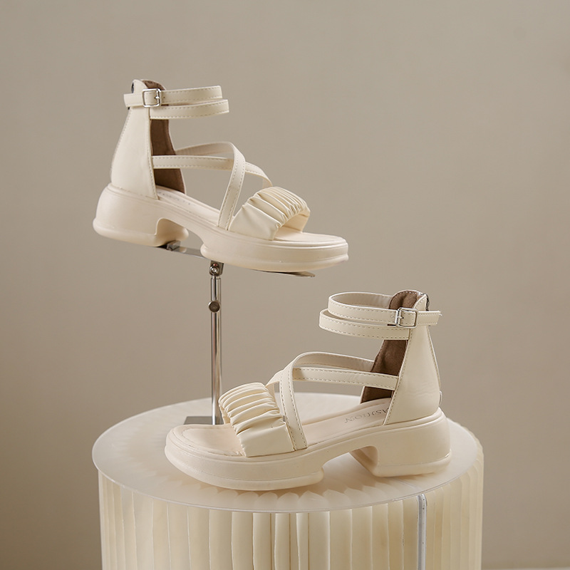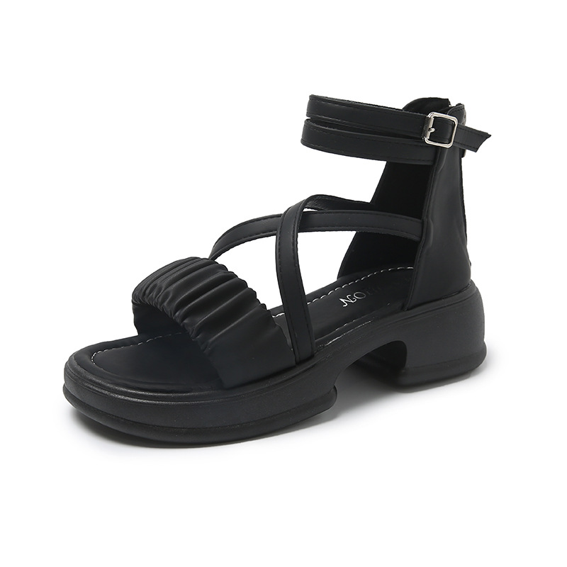 2025년 신상 여름 스타일 오픈토 미드힐 패셔너블 여성 샌들 원라인 버클 스트랩 플랫폼 밑창 지퍼 캐주얼 여성화스토어 가기