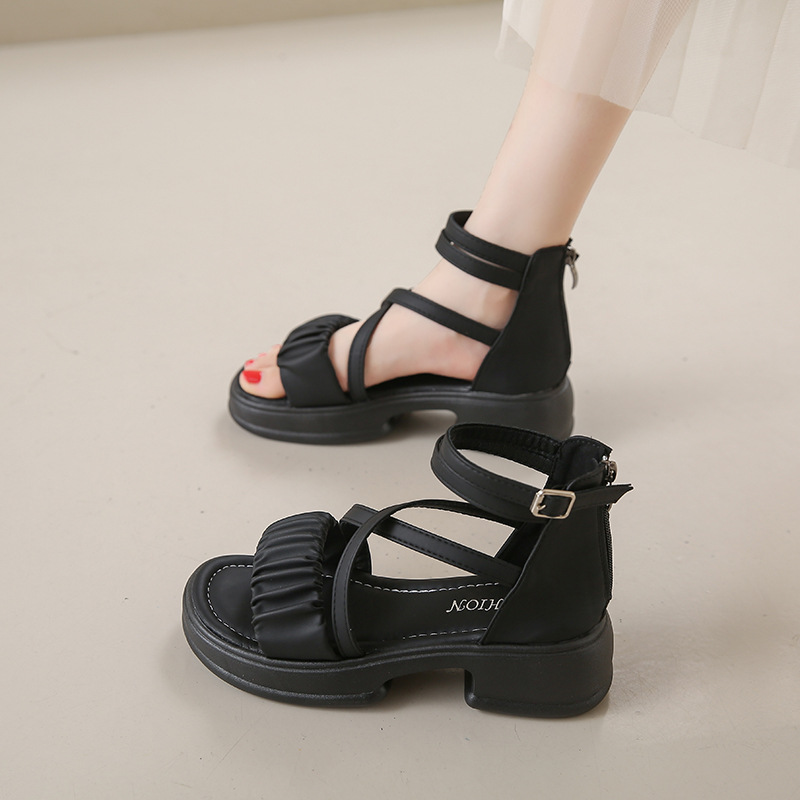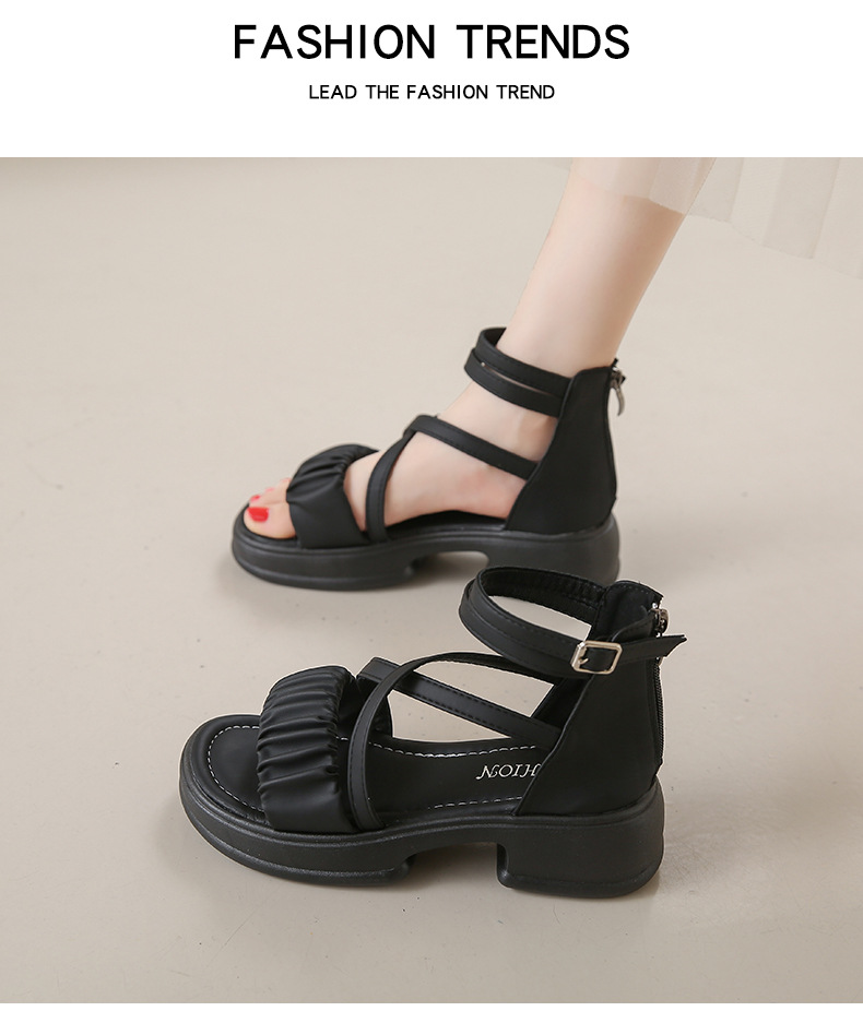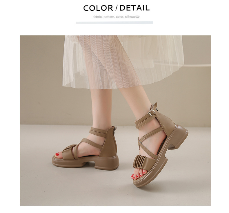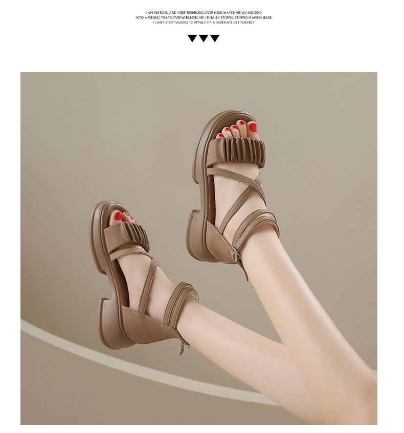 2025년 신상 여름 스타일 오픈토 미드힐 패셔너블 여성 샌들 원라인 버클 스트랩 플랫폼 밑창 지퍼 캐주얼 여성화