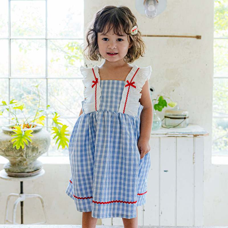 여름 새로운 도착 스커트 어린이 25 여름 서양식 한국 스타일 격자 무늬 활 소녀의 여름 조끼 원피스스토어 가기