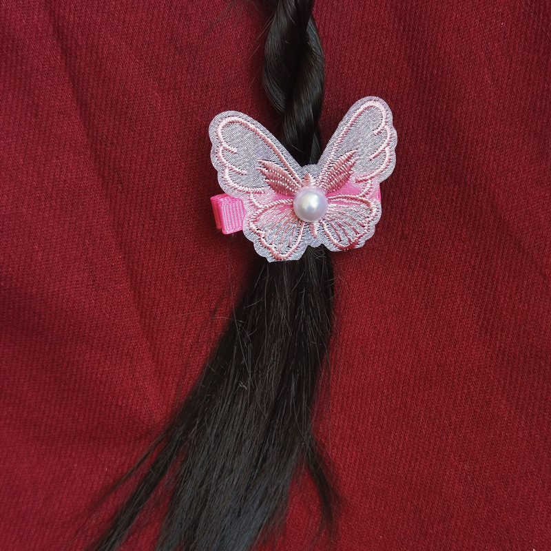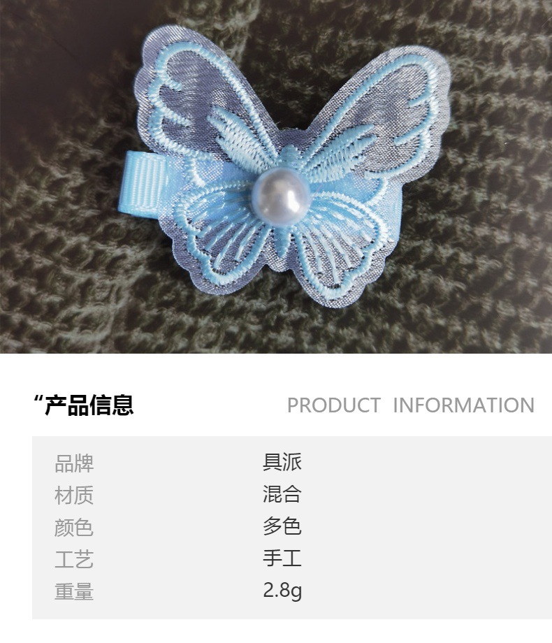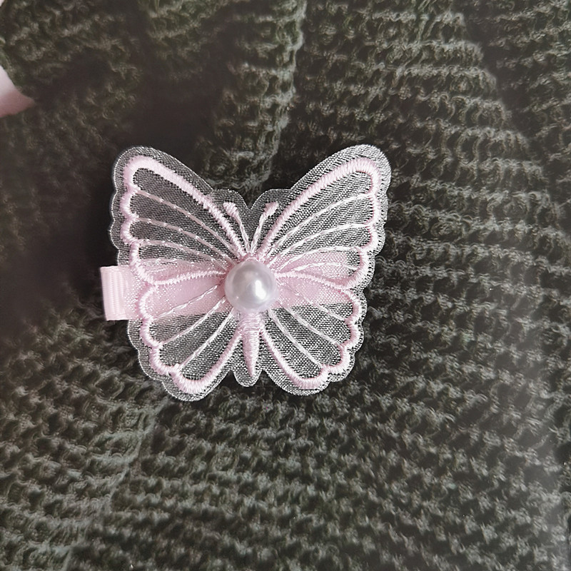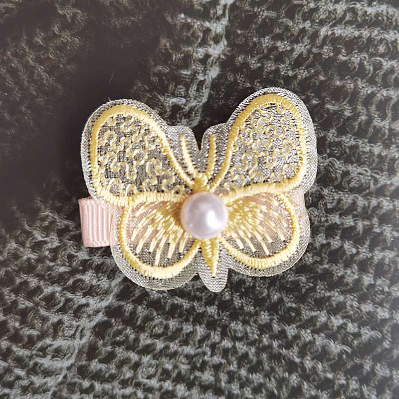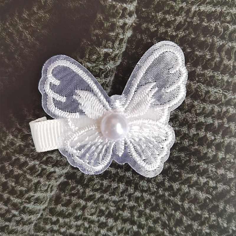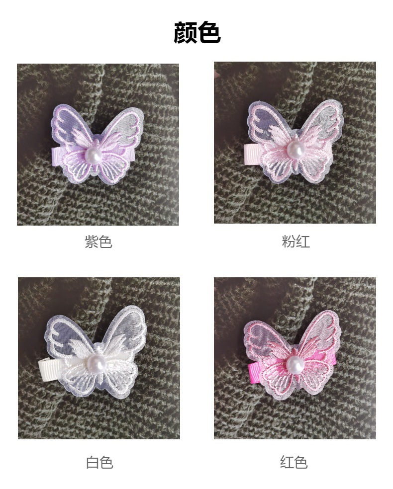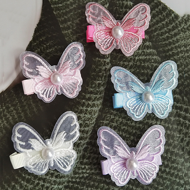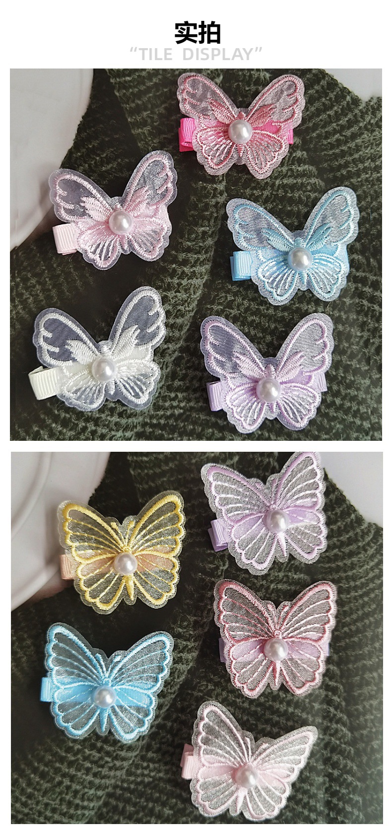 5cm 싱글 레이어 진주 자수 나비 헤어핀 다채로운 나비 레이스 메쉬 어린이 툴레 헤드웨어 뱅 헤어핀스토어 가기