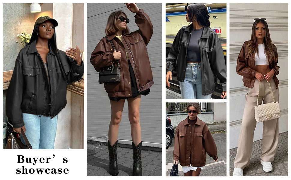 2025 유럽과 미국의 국경 간 여성 가을, 겨울 새로운 PU 가죽 자켓 느슨한 긴팔 옷깃 오토바이 복고풍 가죽 자켓스토어 가기