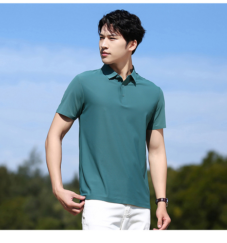 아이스 실크 심리스 남성 폴로 셔츠 여름 얇은 비즈니스 캐주얼 탄성 통기성 반팔 티셔츠 남성 솔리드 컬러 팀 유니폼스토어 가기