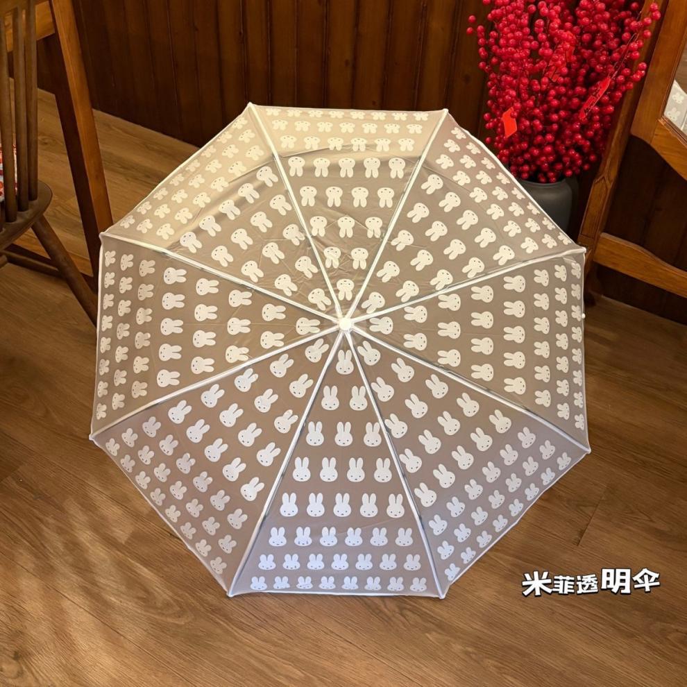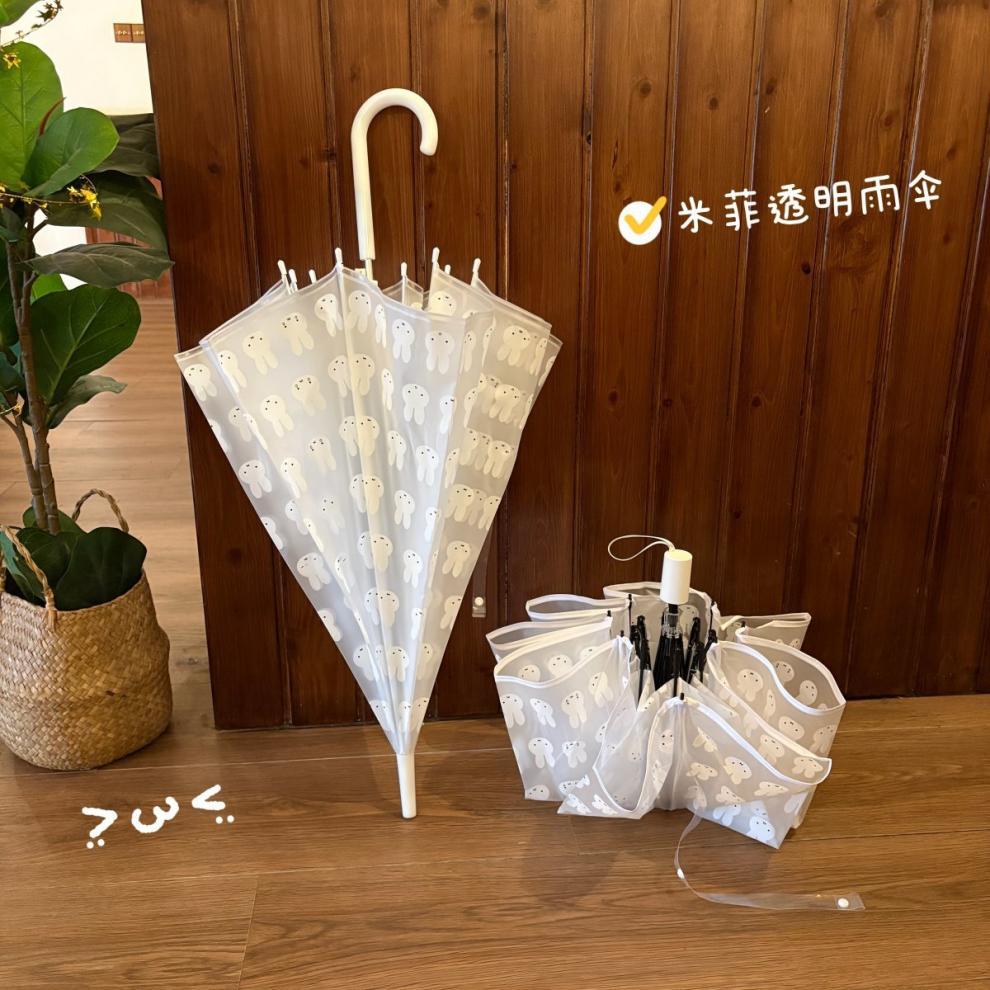 Miffy 투명 우산 완전 자동 비 또는 빛 긴 손잡이 접이식 이중 용도 귀여운 만화 신선한 어린이 ins 학생 두꺼운스토어 가기