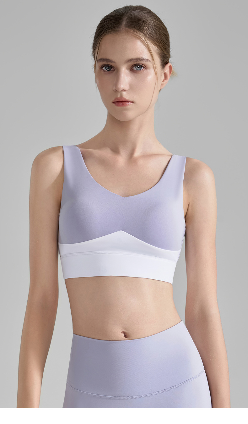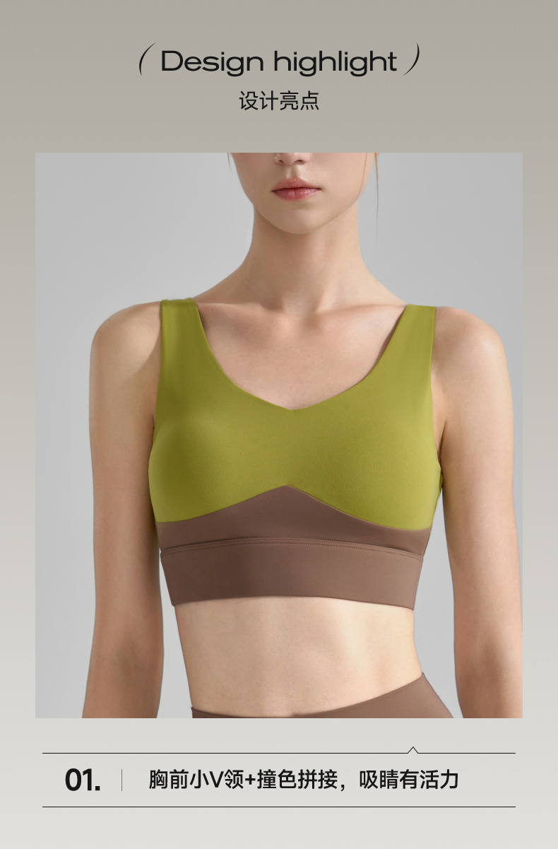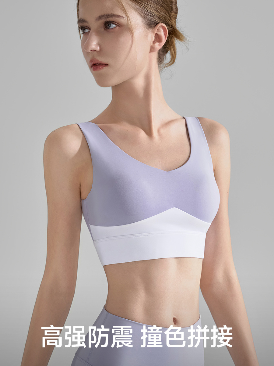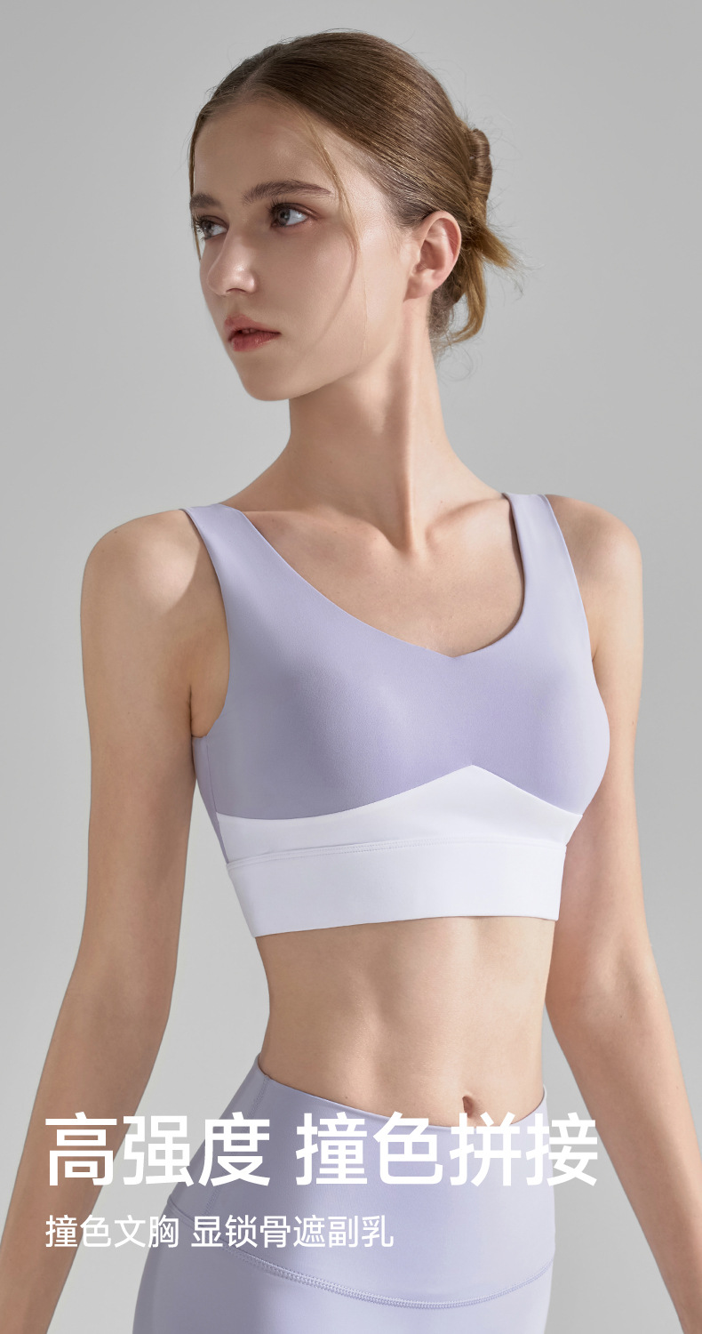 콘트라스트 컬러 스티칭 와이드 숄더 스트랩 스포츠 속옷 여성 여름 새로운 V-넥 요가 조끼 러닝 트레이닝 피트니스 브라