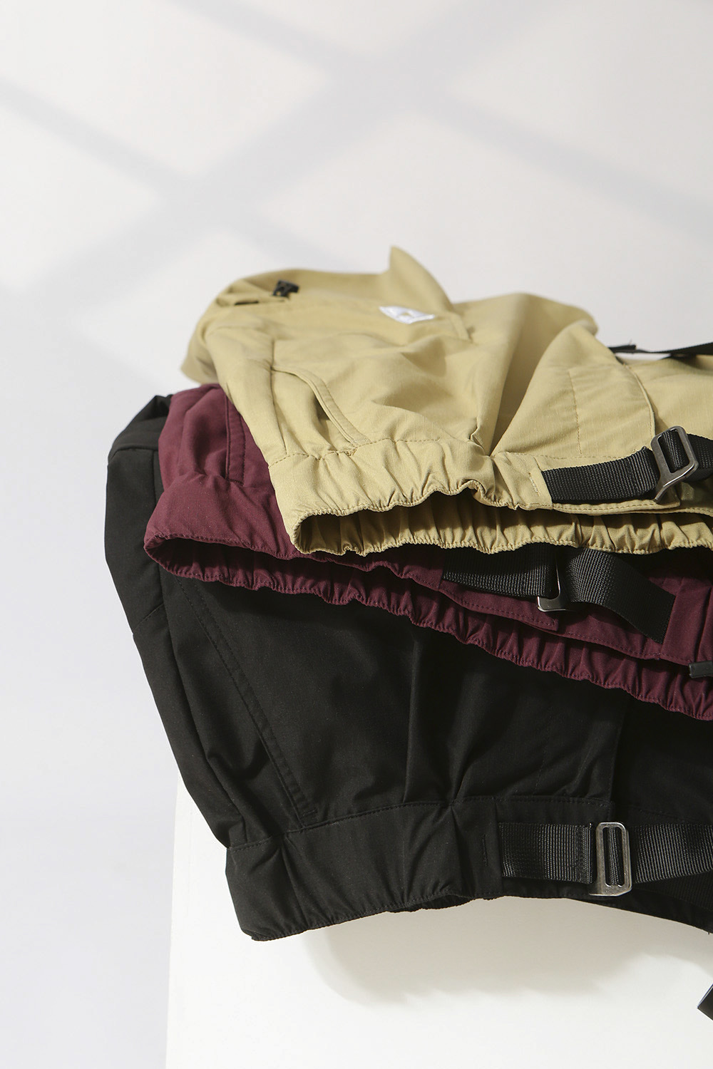 腰部单粒扣+拉链+松紧腰+尼龙腰带设计,,