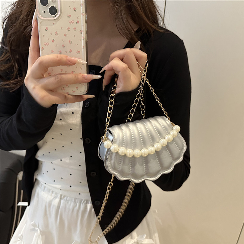 한국 스타일 진주 유행 패션 간단한 크로스 바디 백 2025 여름 새로운 세련된 체인 숄더 백 핸드 쉘 백스토어 가기