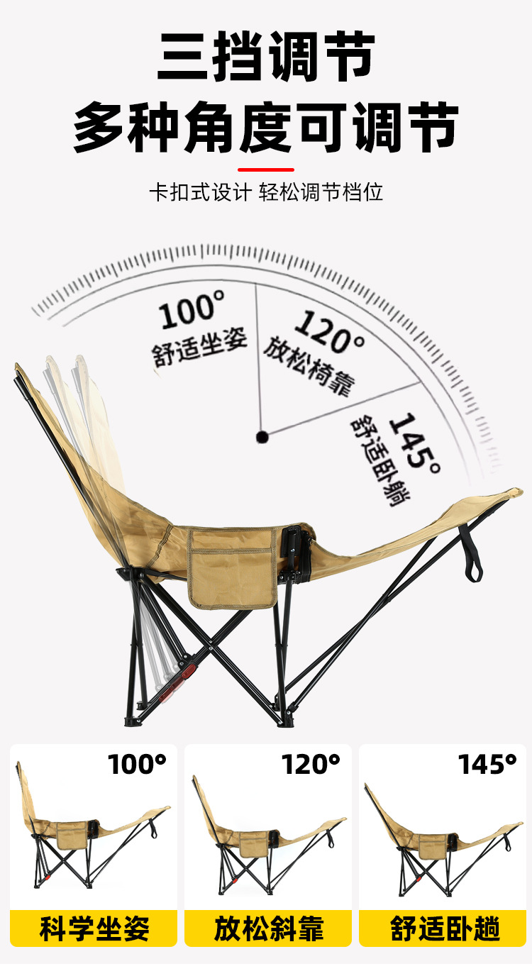 높이 조절이 가능한 야외 접이식 달 의자, 3단 조절 가능한 다리 받침대, 야외 캠핑 피크닉 낚시 해변 점심 시간 의자