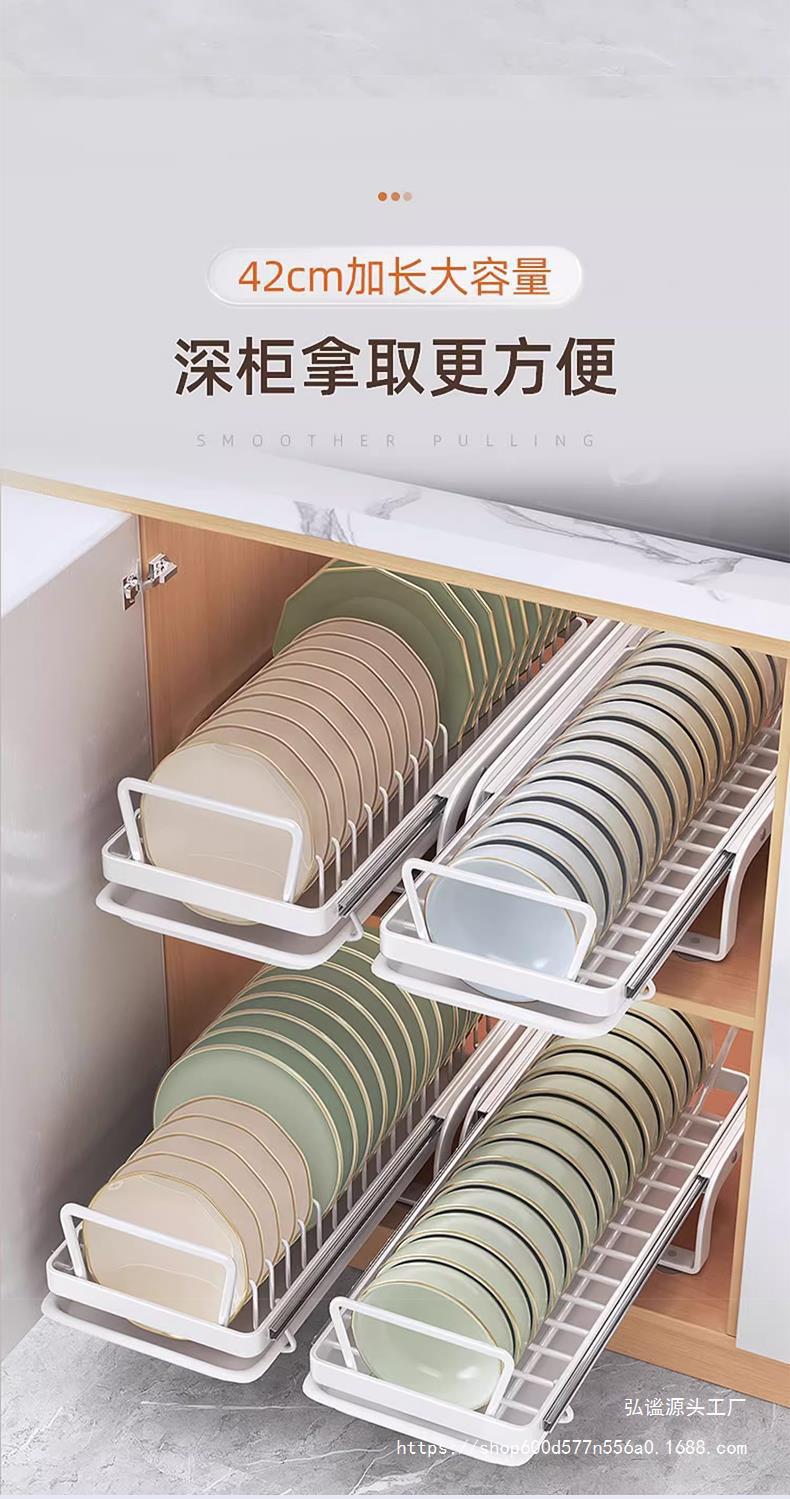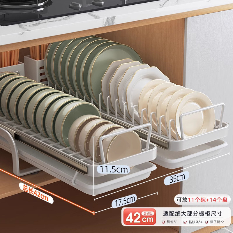 • ◑[업그레이드 및 두꺼워짐] [42cm 더블 레이어] 풀아웃 그릇 랙 + 접시 랙 --- 내구성이 뛰어난 전기 도금 슬라이드◑