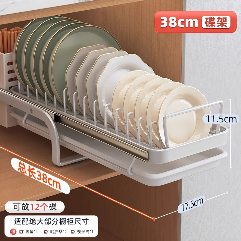 • ◑[업그레이드 및 두꺼워짐] [38cm 단일 레이어] 풀아웃 그릇 랙 + 접시 랙 - 내구성이 뛰어난 전기 도금 슬라이드◑