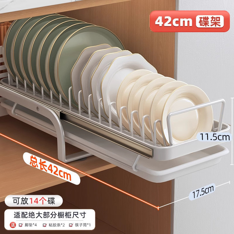 • ◑[업그레이드 및 두꺼워짐] [42cm 단일 레이어] 풀아웃 그릇 랙 + 접시 랙 - 내구성이 뛰어난 전기 도금 슬라이드◑