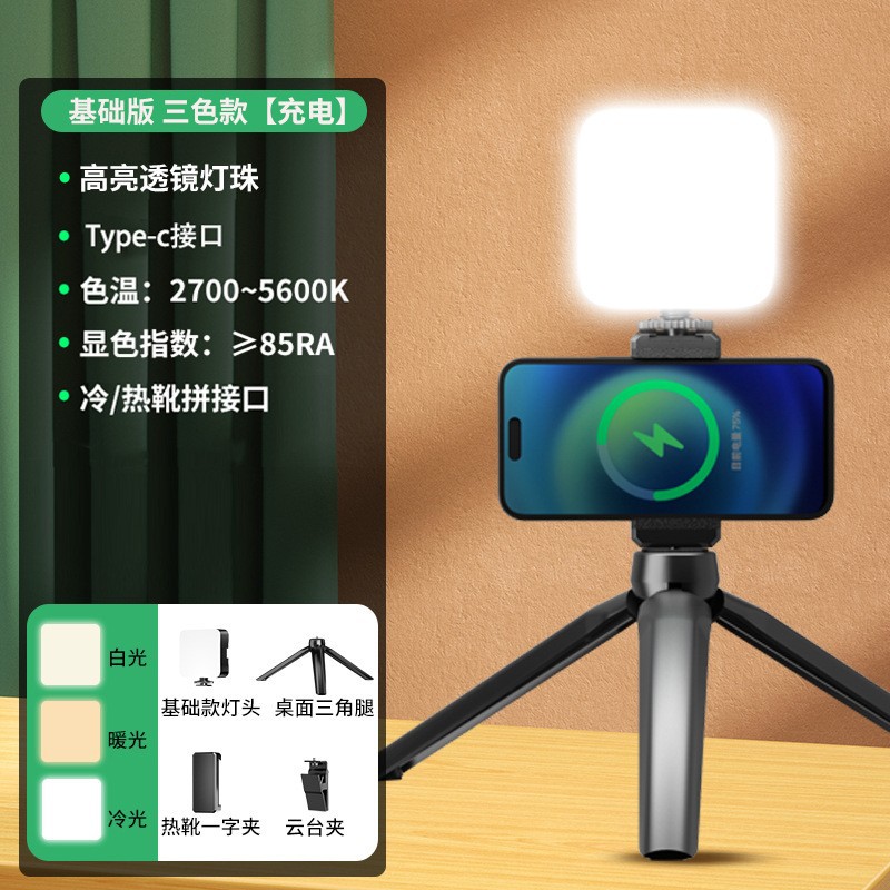 • 기본형 [3색 조명] 충전식 (충전 케이블 + 탁상용 삼각대 + 볼헤드 클램프 + 싱글 휴대폰 거치대 포함)
