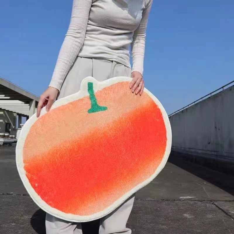 Ins 그라디언트 과일 카펫 욕실 흡수성 비 슬립 캐시미어 모방 만화 홈 바닥 매트 침대 옆 담요 모양의 담요스토어 가기