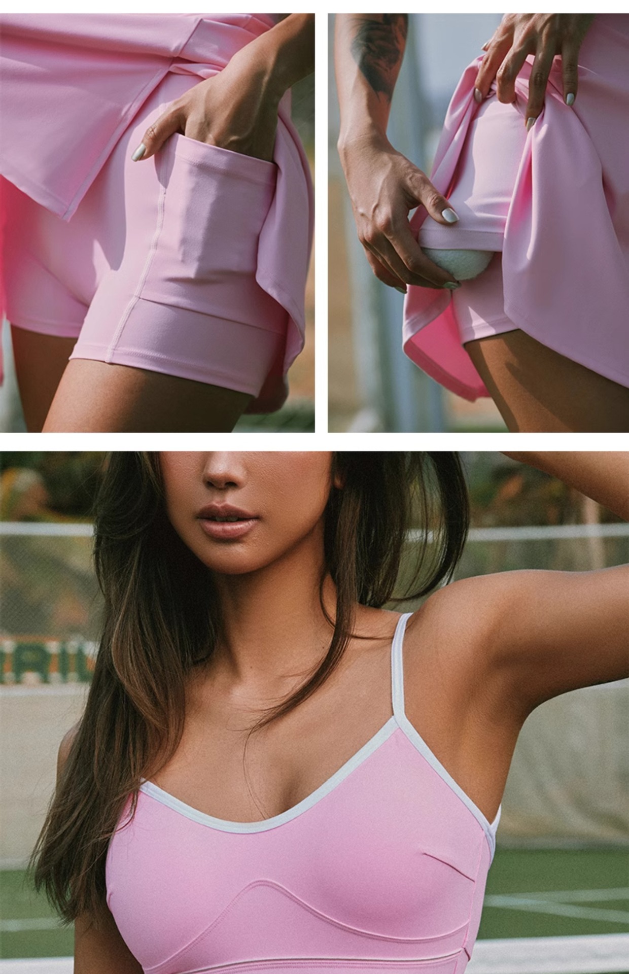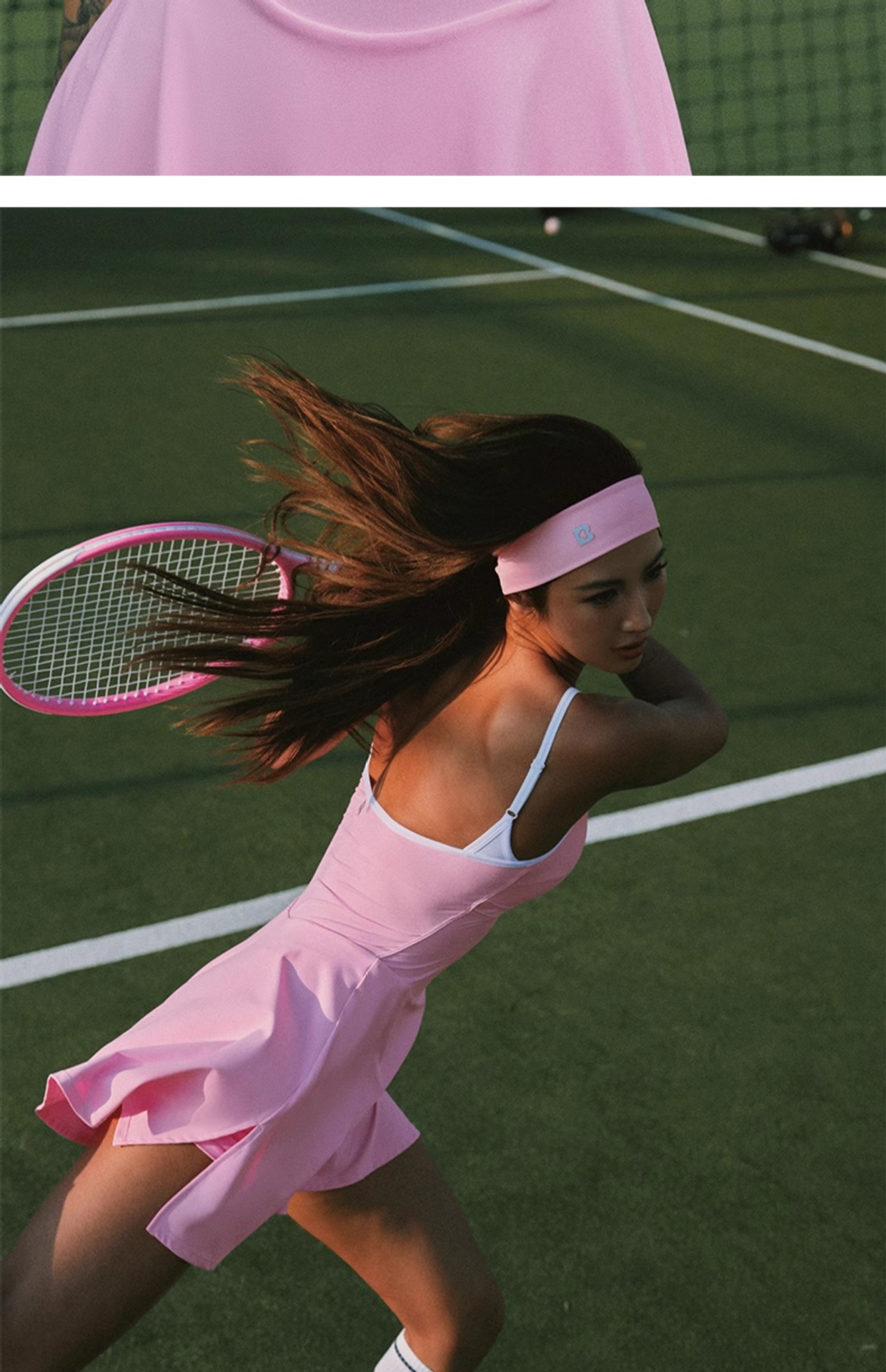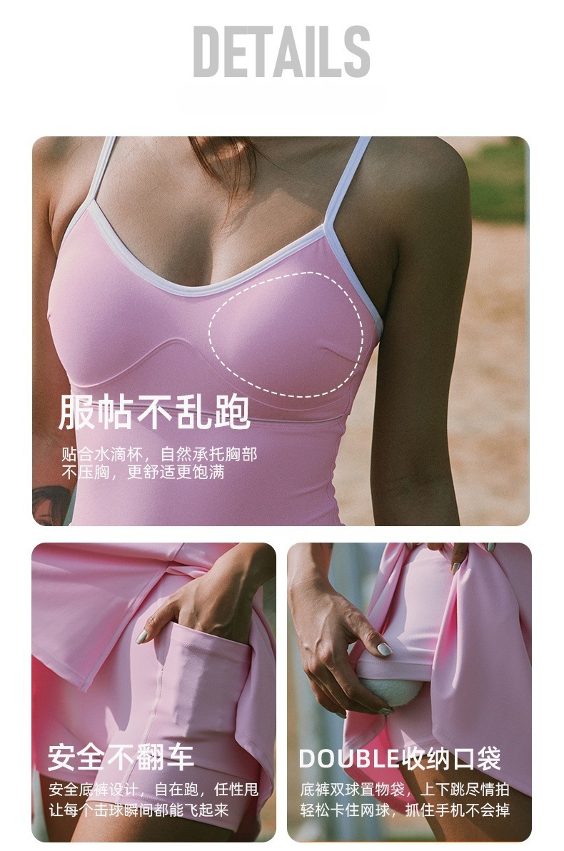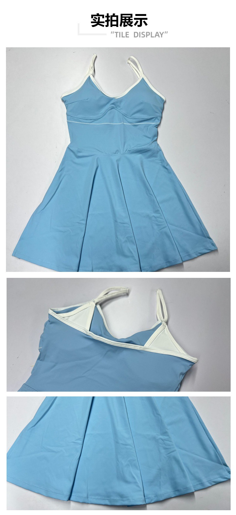 여성용 여름 스포츠 및 피트니스 원피스 스커트, 통기성이 뛰어나고 몸에 꼭 맞으며 편안하고 등이 속이 빈 요가복 및 가슴 패드가 있는 스포츠 슈트