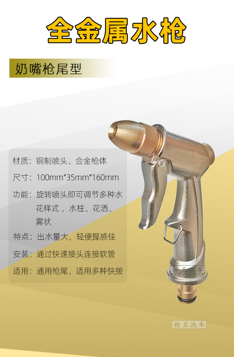 • 젖꼭지 긴 막대 전체 금속 구리 헤드 물총 + 4점 빠른 연결 + 다목적 연결