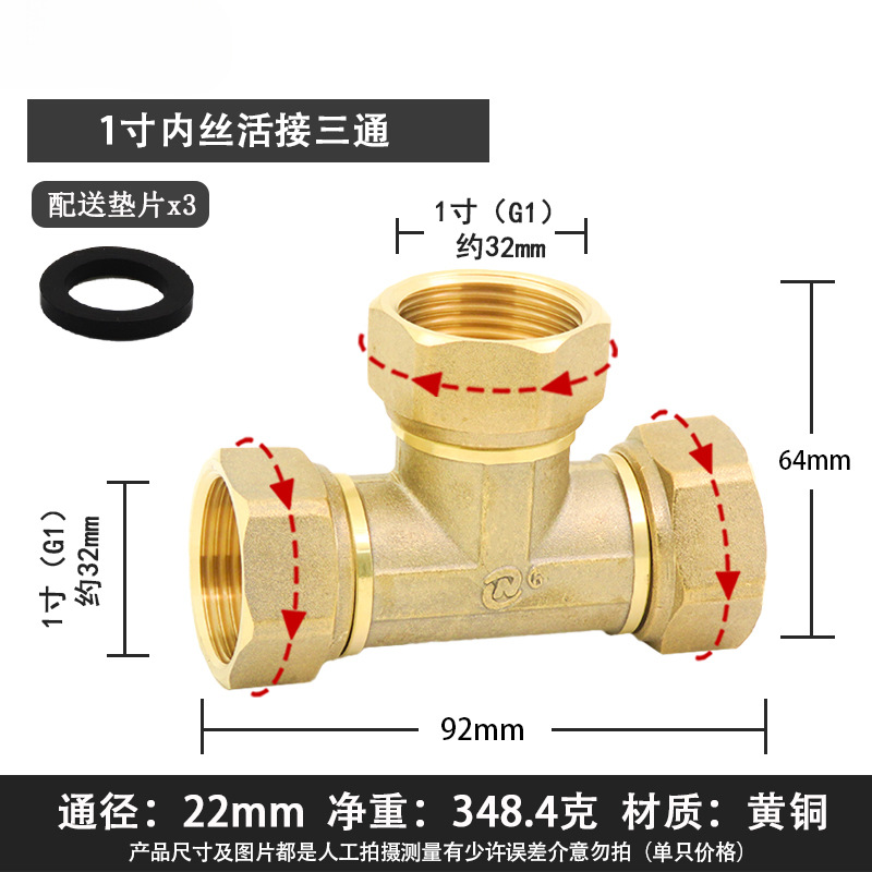• 【25】 내부 x6 추가 x 1inch 내부 유니온 티 - 중대형 티