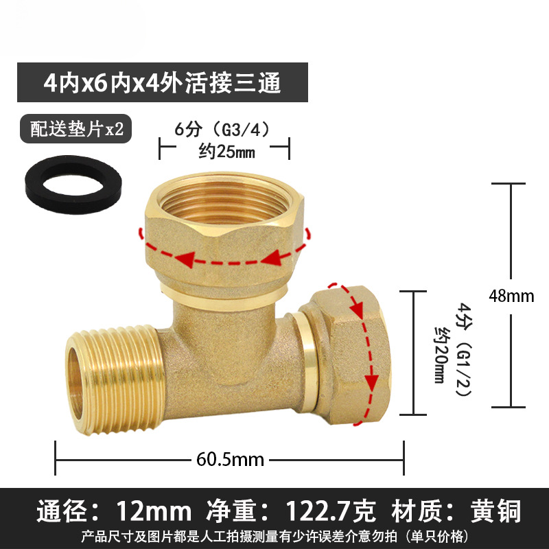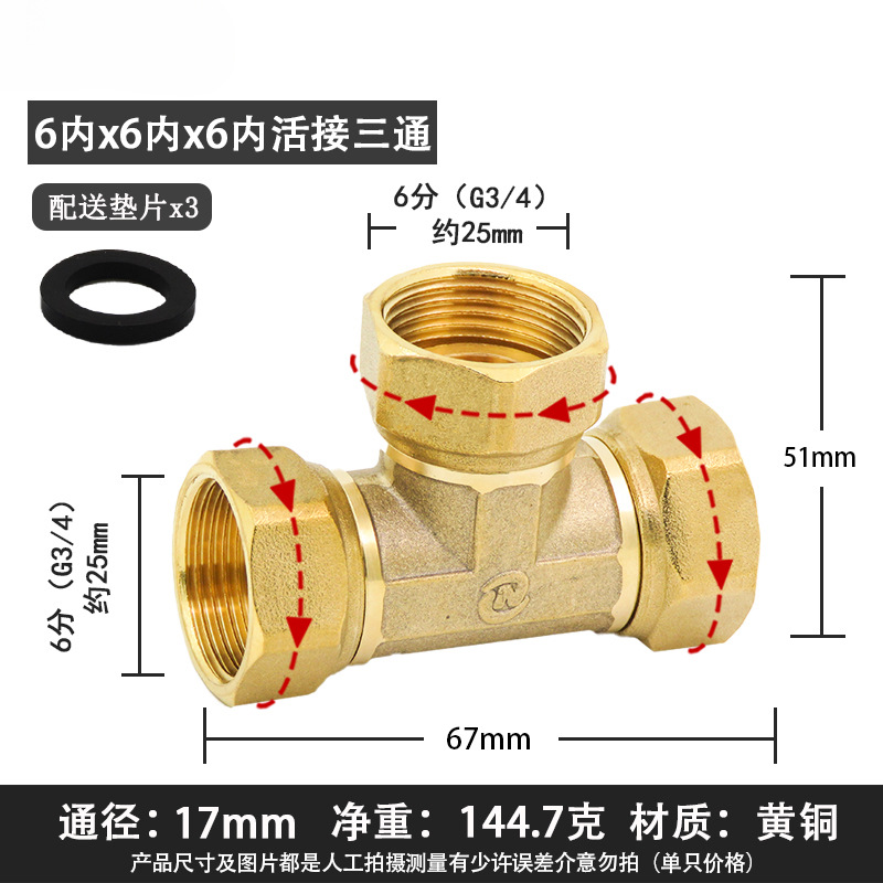 전체 구리 대유량 글랜드 3방향 내부 및 외부 와이어 코너 Y형 이동식 너트 조인트 4포인트 6포인트 워터 분배기 3방향