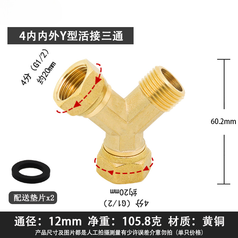 전체 구리 대유량 글랜드 3방향 내부 및 외부 와이어 코너 Y형 이동식 너트 조인트 4포인트 6포인트 워터 분배기 3방향스토어 가기