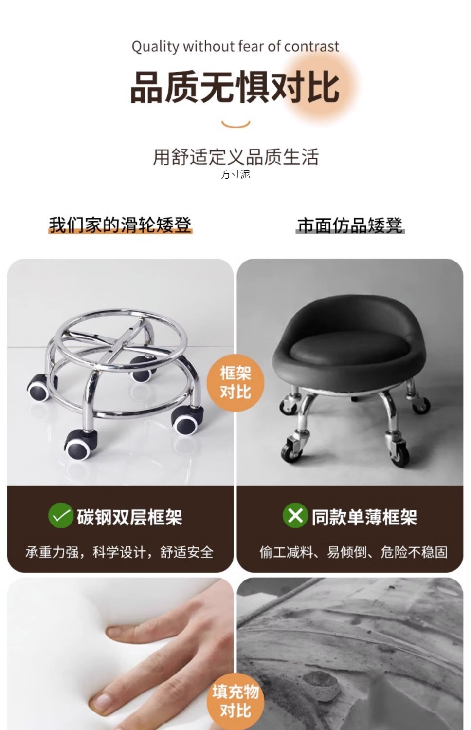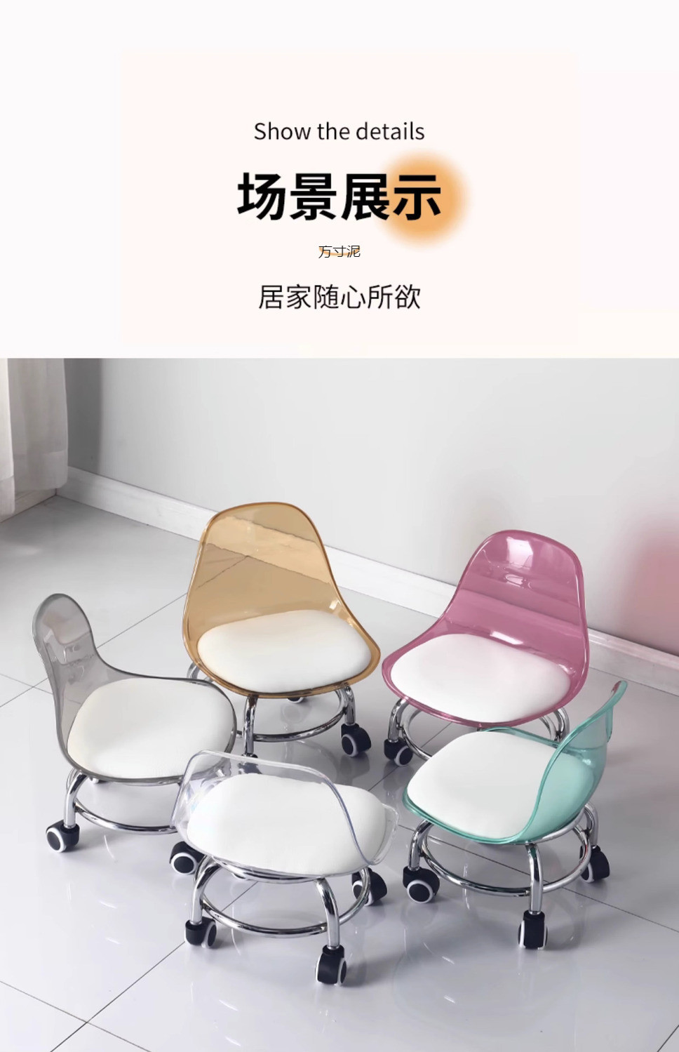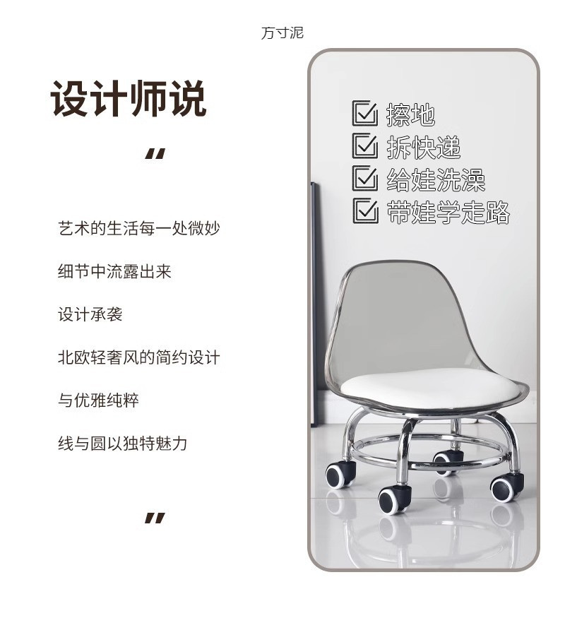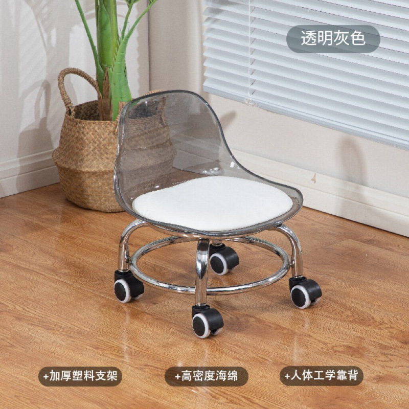 아크릴 투명 바퀴가 달린 비 스테인레스 스틸 작은 의자 가정용 작은 의자 도르래 낮은 의자 아름다운 스티치 의자 대외 무역 도매스토어 가기