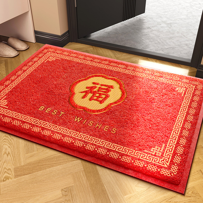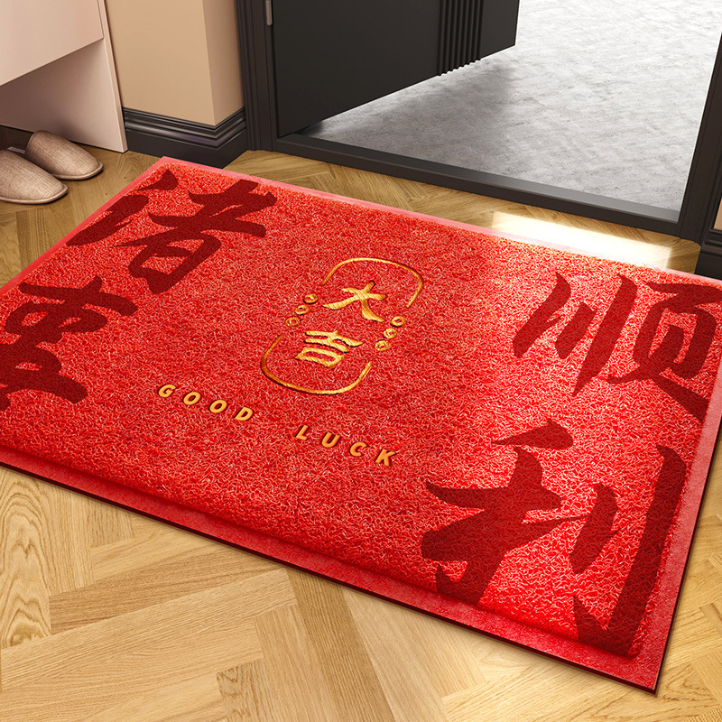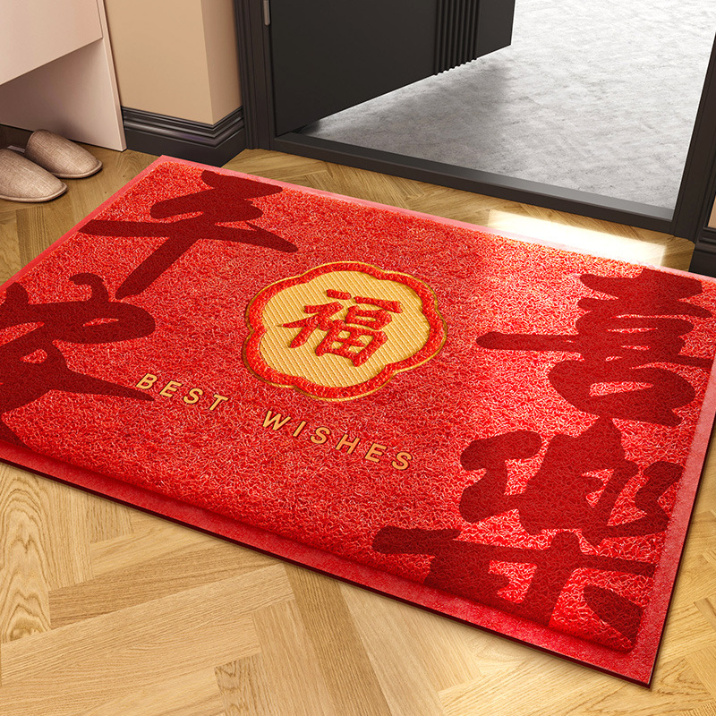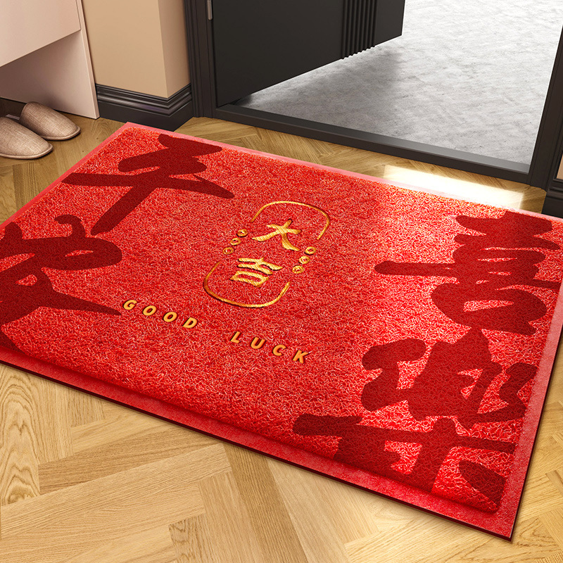 • Xile-Lucky 레드 가죽 엠보싱 와이어 후프 홈 바닥 매트