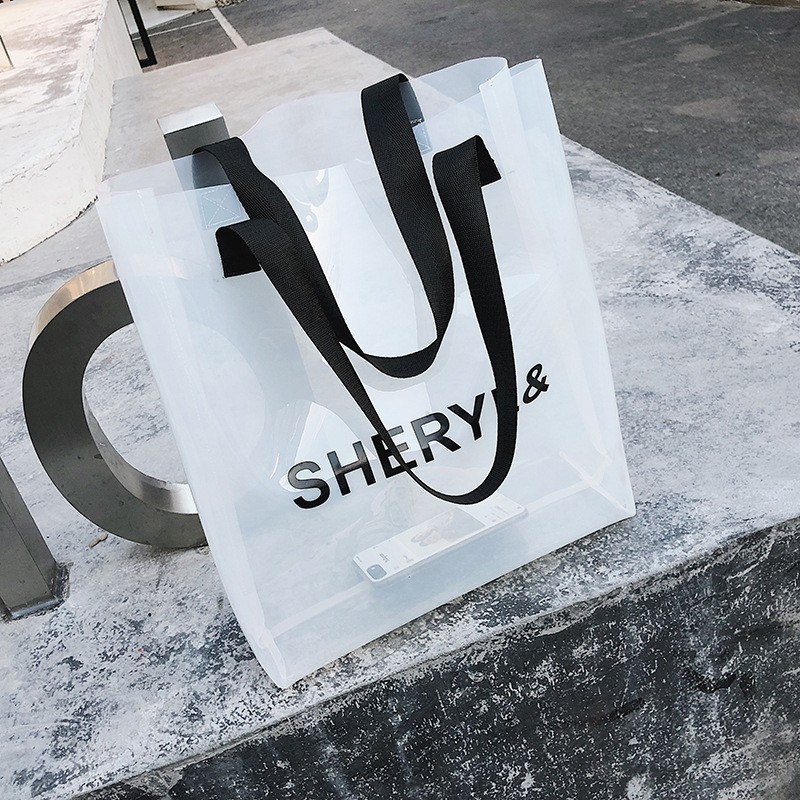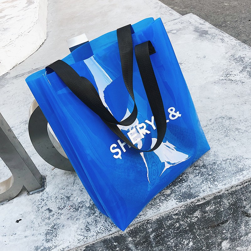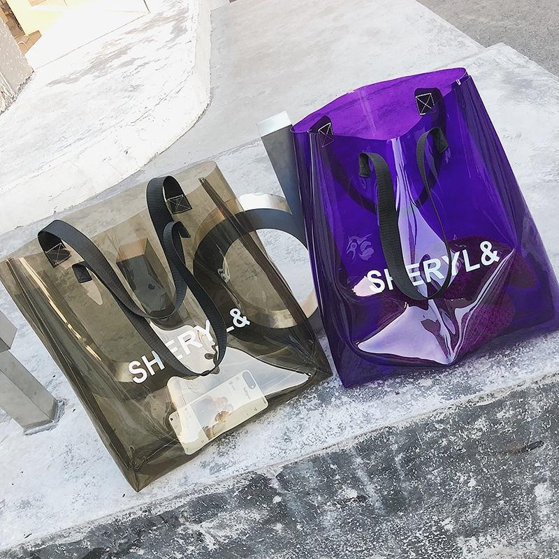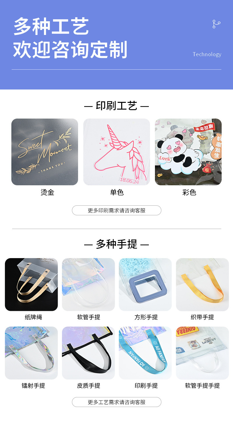 PVC 플라스틱 레이저 투명 토트 백 맞춤형 젤리 백 다채로운 레이저 PVC 고급 선물 가방 선물 가방스토어 가기
