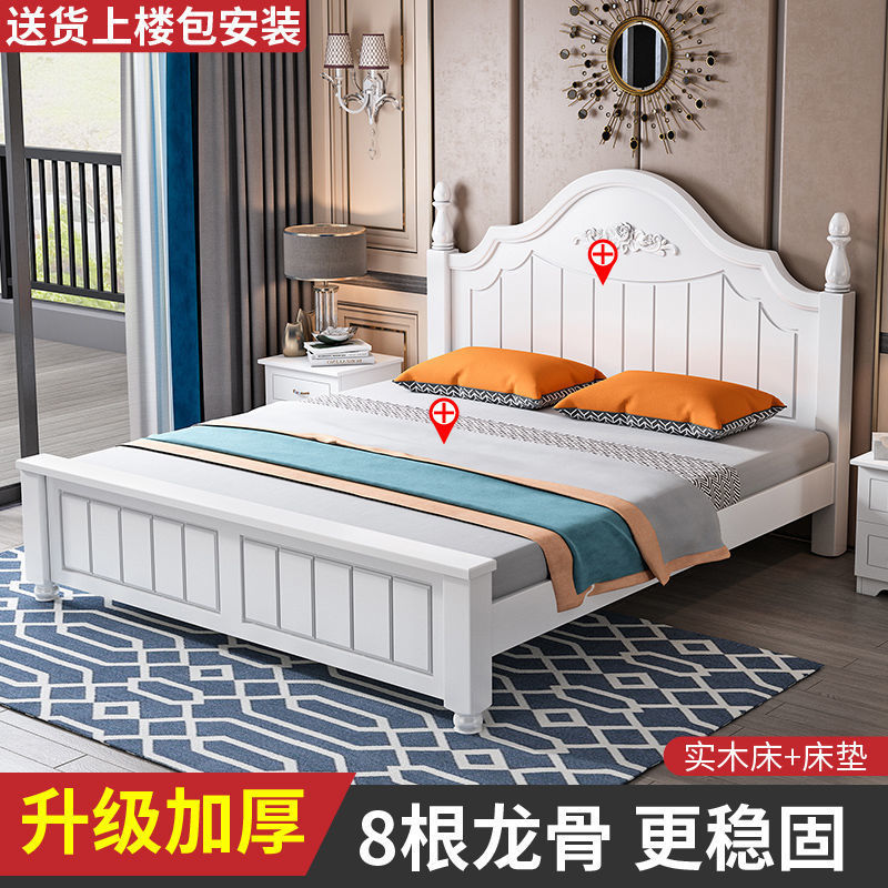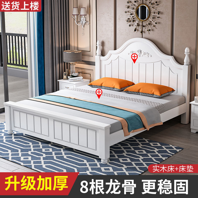 원목 침대 모던 심플 1.5m 더블 침대 1.2m 경제적인 임대실 1.8 마스터 침실 공주 싱글 침대스토어 가기
