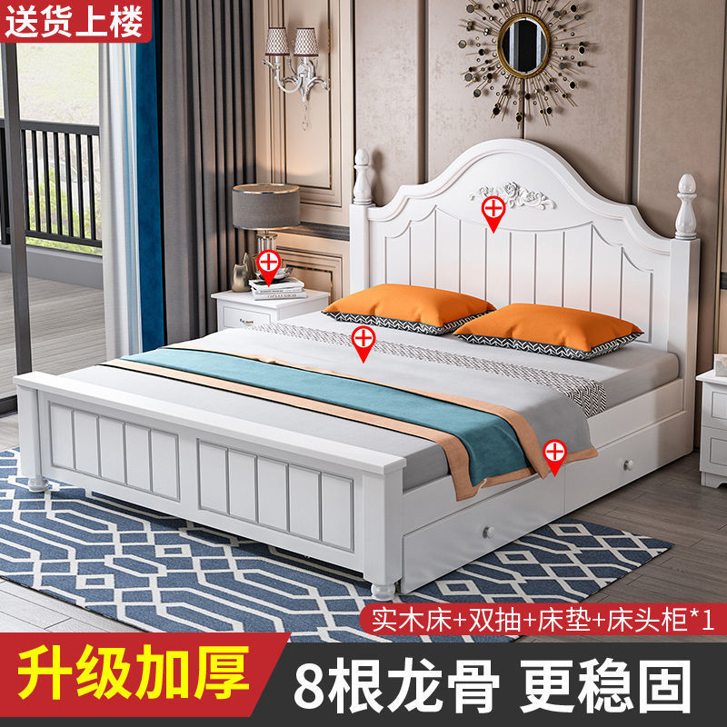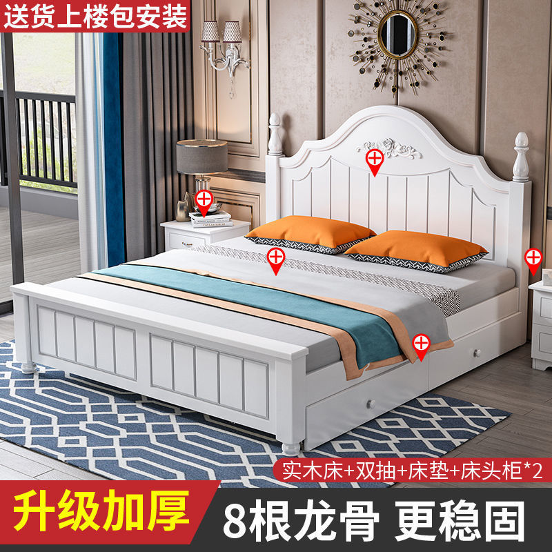 • 두꺼운 원목 침대 + 더블 서랍 + 매트리스 + 캐비닛 가방 1개