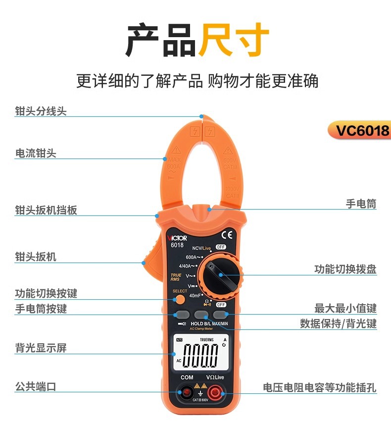 클램프 멀티미터 VC6018 클램프 미터 디지털 전류계 고정밀 클램프 미터 VC6017 다기능스토어 가기