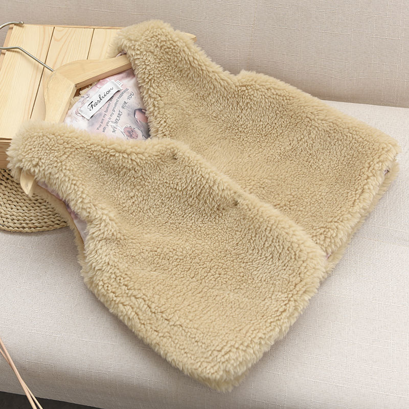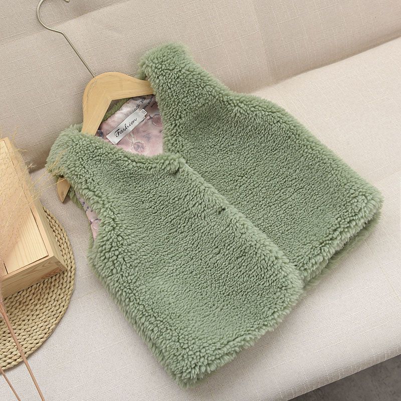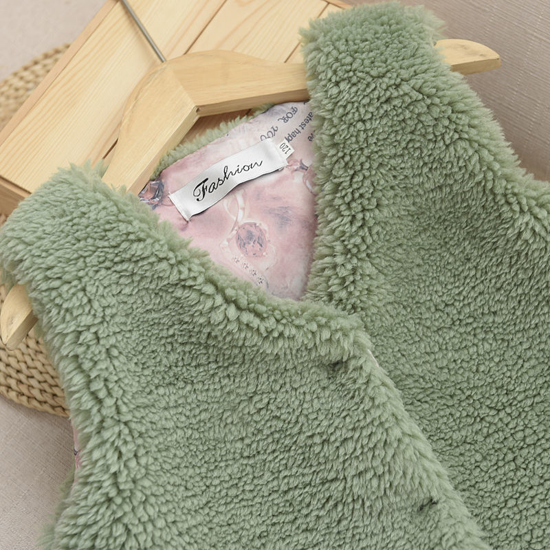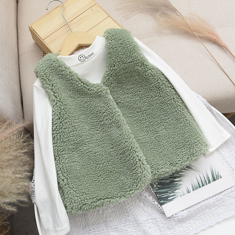 2025 새로운 가을, 겨울 소녀의 과립 캐시미어 모조 모피 조끼 하트 어린이 아기 스타일 따뜻한 조끼 겉옷스토어 가기
