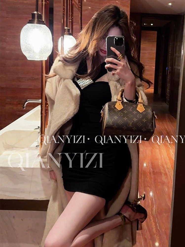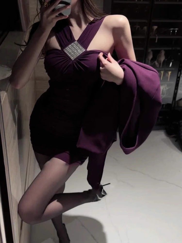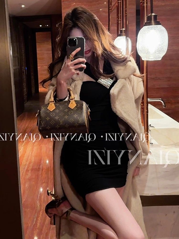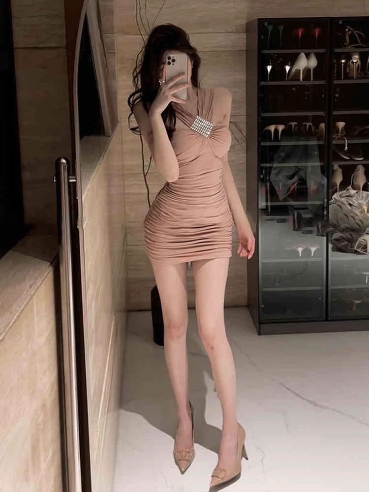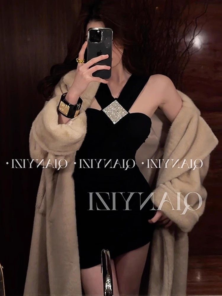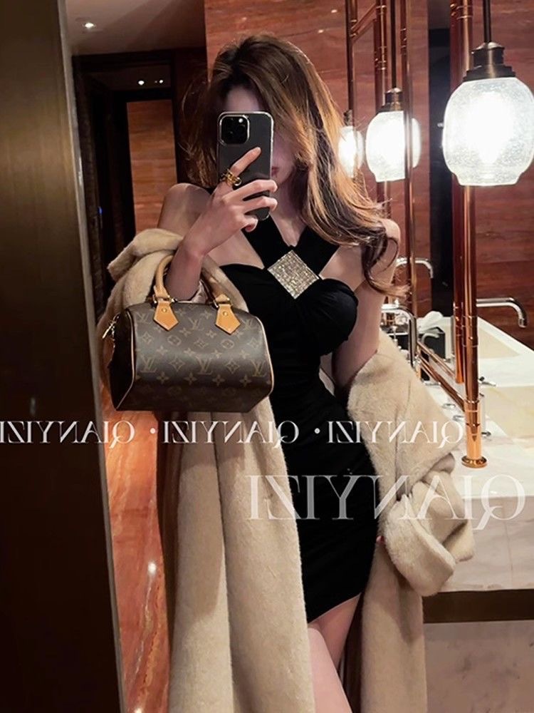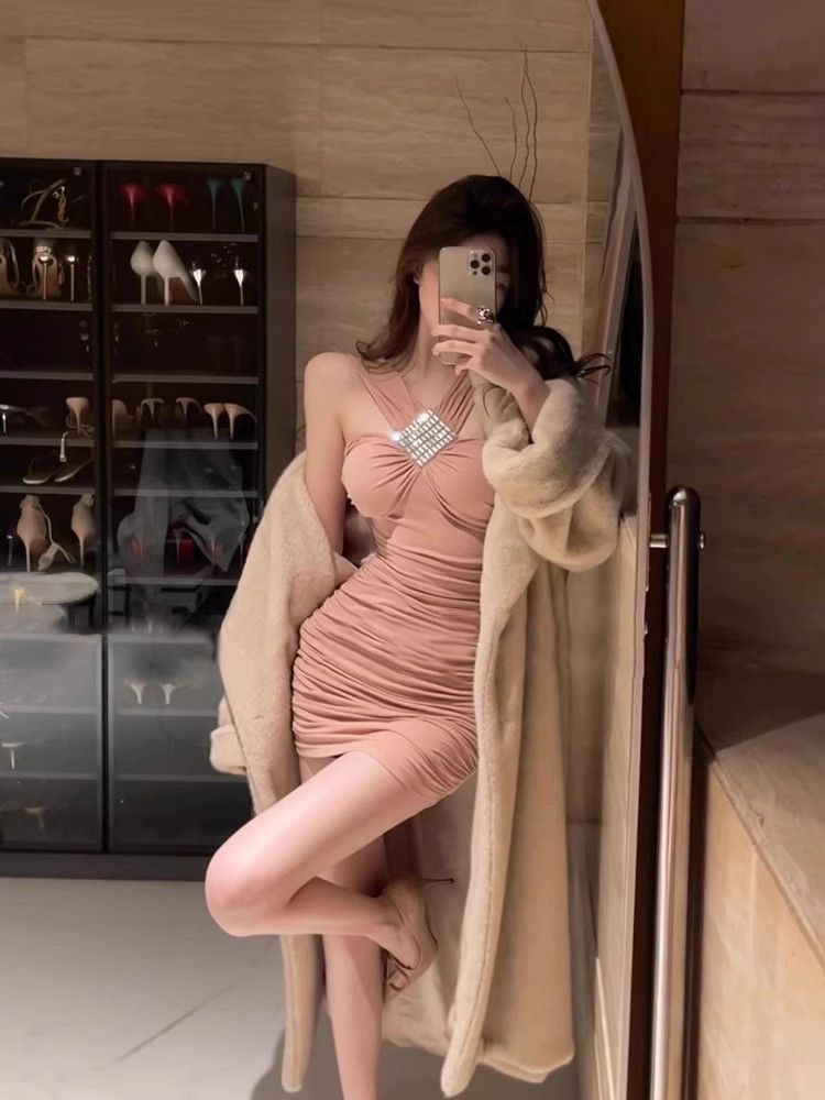여성을위한 순수한 욕망 디자인 다이아몬드 백리스 서스펜더 드레스 여름 새로운 슬림 피트 섹시한 핫 소녀 힙 스커트스토어 가기