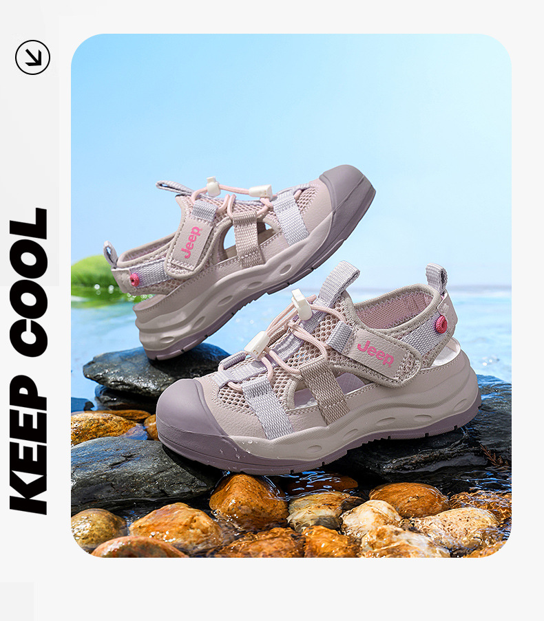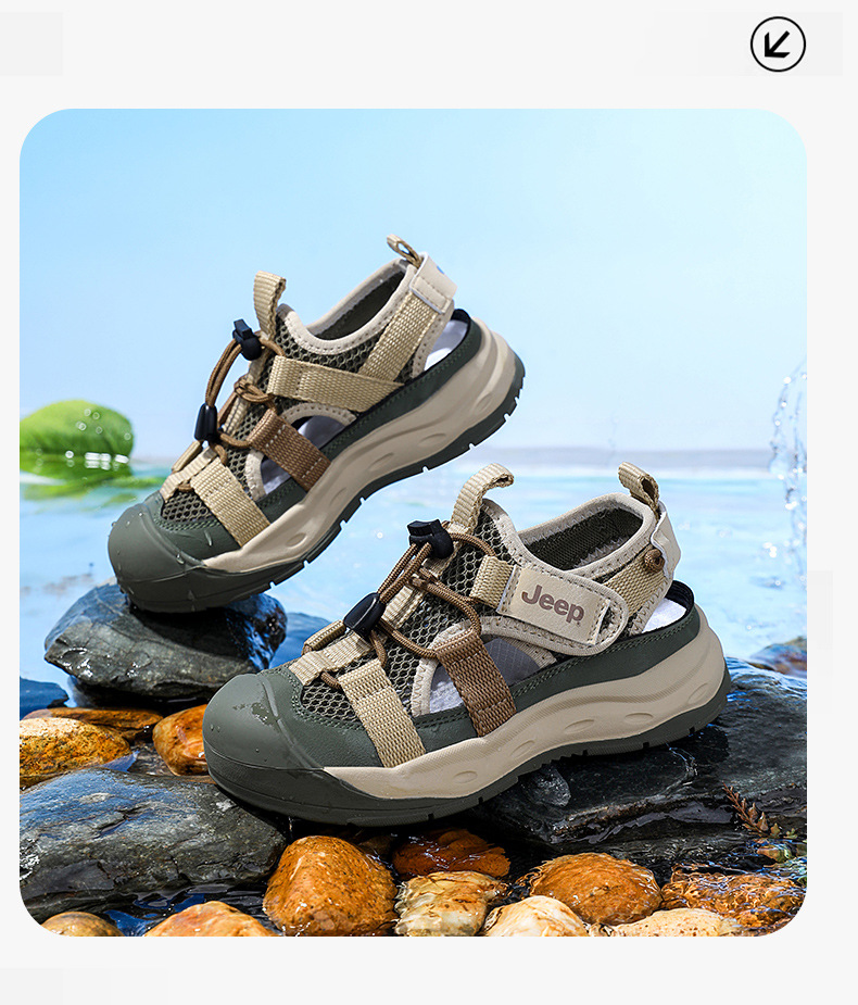 지프 소년 여름 바오터우 샌들 2025 여름 신작 어린이 강 신발 부드러운 바닥 소녀 웨이딩 비치 신발