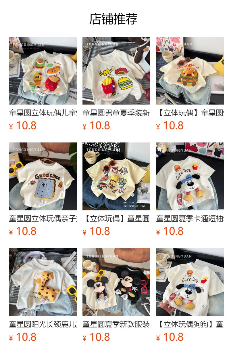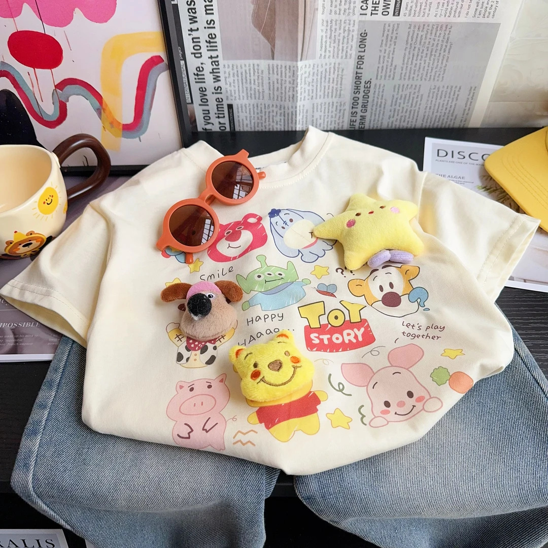 어린이 여름 입체 만화 인형 반팔 티셔츠 새로운 스타일 아기 소년의 승무원 패션 톱 T스토어 가기