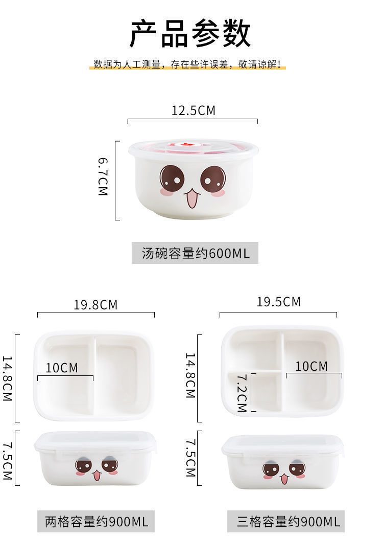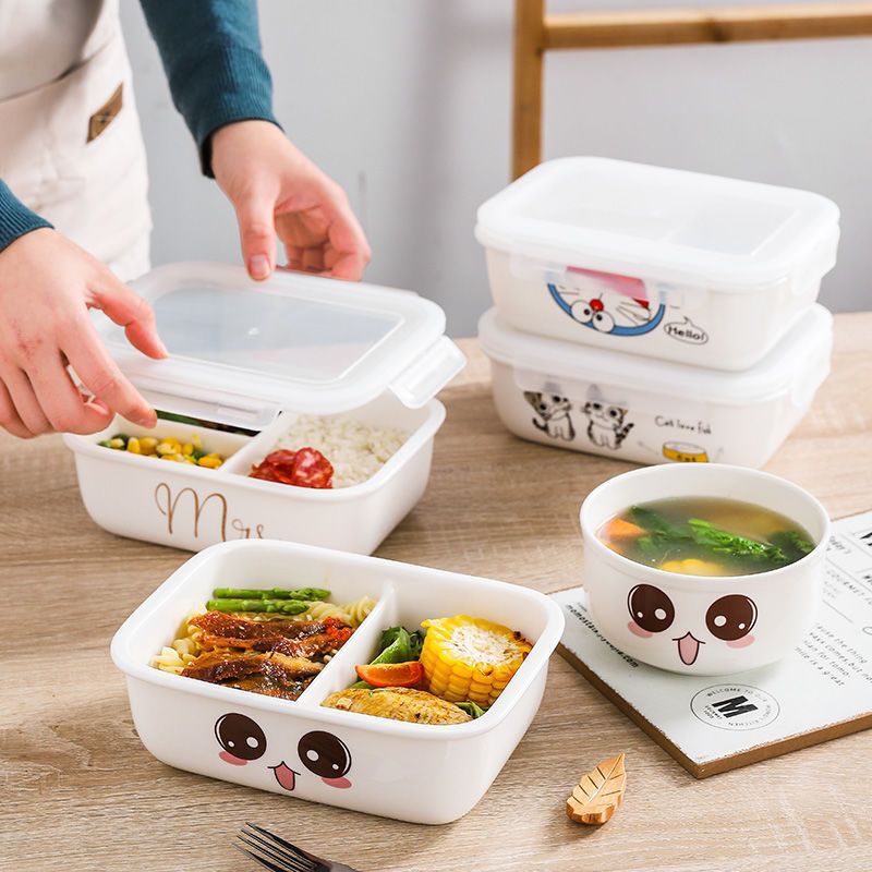 세라믹 도시락 상자 학생 도시락 칸막이 도시락 사무실 노동자 세트 뚜껑을 가진 전자 레인지 난방 절연 gekun스토어 가기