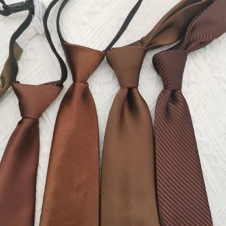 브라운 커피 체크 무늬 레트로 프리 레이지 jk 넥타이 dk 솔리드 컬러 짧은 핸드 타이드 트윌 다용도 남성과 여성 트렌드