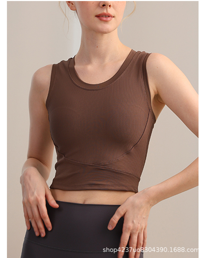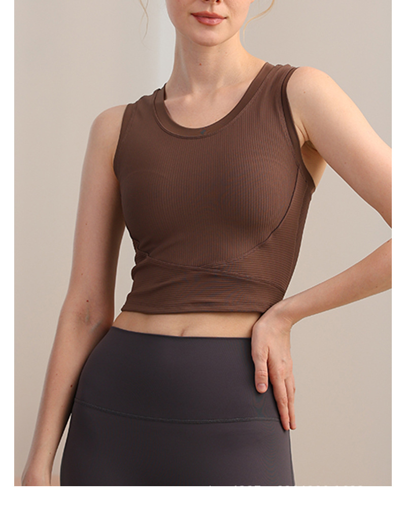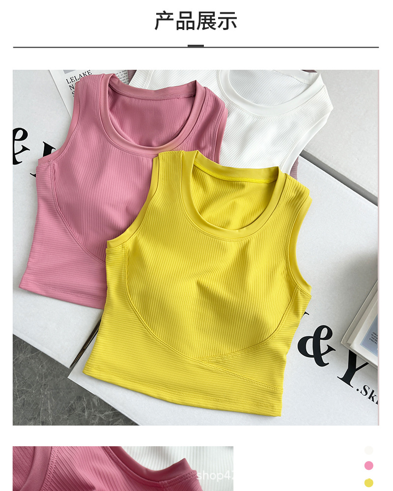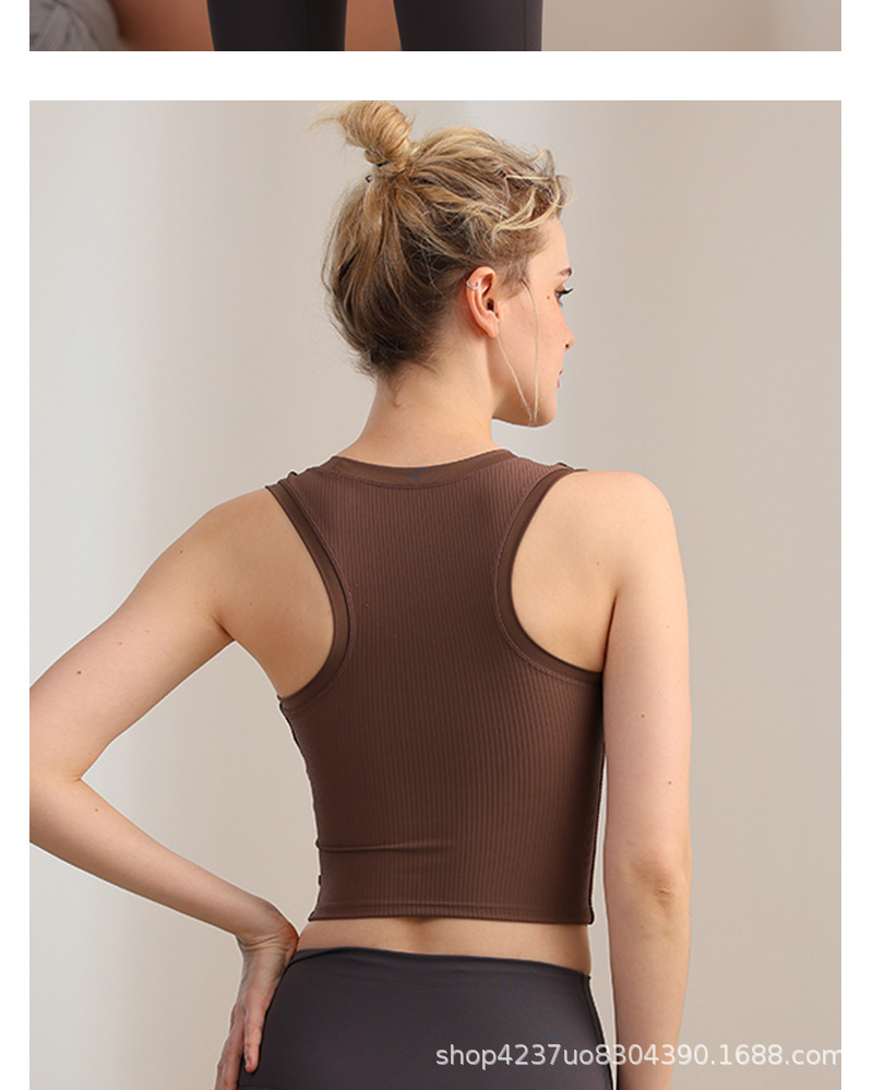 룰루와 같은 스타일의 요가 라운드 넥 조끼 스레드 탄성 스포츠 브라 고정 가슴 패드 허리 충격 흡수 러닝 아름다운 등